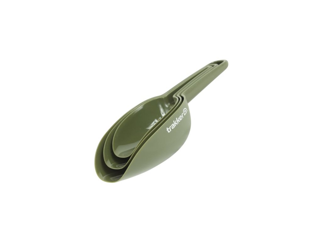 Představujeme Vám set třech kompaktních lopatek Trakker Bait Scoop Set, které se skvěle hodí na celou řadu věcí. Jsou ideální například na míchání spod mixů, method mixů nebo stick mixů, práci s tekutými složkami krmení, nabírání krmení do raket nebo zavážecích lodiček. Díky těmto malým pomocníkům si nebudeme muset pokaždé špinit ruce a nestane se Vám, že byste krmení někde rozsypali.