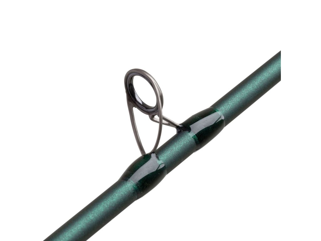 Štíhly a ľahký saténovo matný zelený blank z vysoko modulovaného uhlíka spĺňa súčasné moderné trendy presnejšou a rýchlejšou akciou. Blank je osadený špeciálnym sedlom navijaka v drevenom dizajne, odolnými očkami a kvalitnou rukoväťou z korku triedy AA.