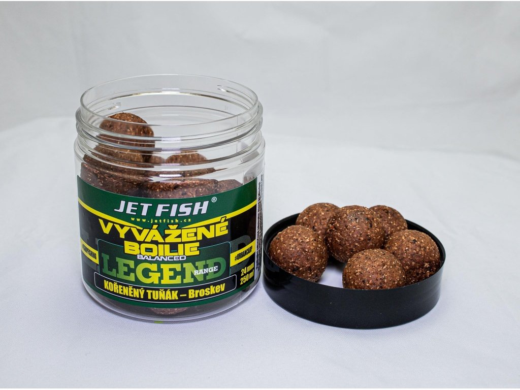 JET FISH 250ml-24mm Legend range Vyvážené boilie : KOŘENĚNÝ TUŇÁK - BROSKEV