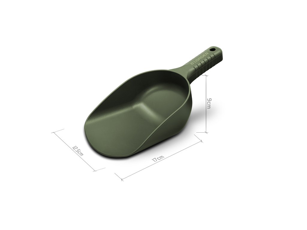 Praktický pomocník při přípravě krmení a samotném zakrmování. Lopatka LOADER je kompletně vyrobena z pevného, velmi odolného plastu, který se snadno čistí a příjemně drží v ruce. Masivní plastová rukojeť dobře padne do dlaně a usnadňuje nabírání i následné zakrmování. Model LOADER L pojme jedním nabráním značné množství krmení. Což oceníte zejména při masivním vnadění. Díky provedení bez děr je ideální i pro krmení s vyšším podílem tekutých složek, jako jsou boostry, zig mixy či jiné tekuté atraktory. Technické parametry: Delphin LOADER L Celková délka s rukojetí: 27cm Rozměr naběračky (dxš): 17x12.5cm Hmotnost: 100gDoplňkové parametry