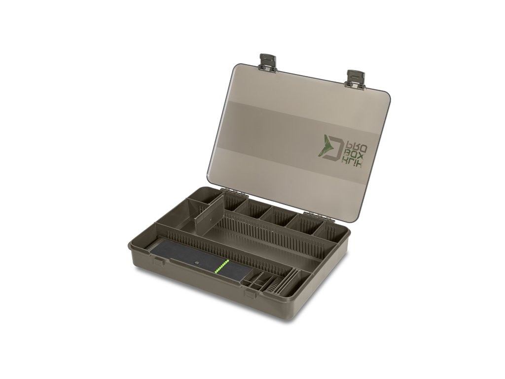 Již z názvu vyplývá, že se jedná o nejpropracovanější a největší organizér ze série KlikBOX. Jeho úložný prostor dokonale pojme velké množství drobné bižuterie, koncových montáží, návazcových materiálů a dalšího příslušenství, které je nedílnou součástí vaší výbavy. Ze série KlikBOX se varianta PRO vyznačuje hlavně největším úložným prostorem. Ten je rozdělen na tři hlavní části, doplněné o polohovatelné přepážky. Díky nim si můžete vnitřní uspořádání přizpůsobit přesně podle svých představ. Organizér obsahuje také dva menší boxy KlikBOX mini 3 a 4, které jsou vhodné pro uložení drobné bižuterie. Aby se předešlo nechtěnému otevření, jsou vybaveny pevným plastovým klipem. Součástí organizéru je i odnímatelné plato KlikRIG z tvrzené pěny a špendlíky, které umožňují pohodlné uchycení vašich koncových montáží. Díky své velikosti a odnímatelnosti je KlikRIG vhodný i pro dlouhé montáže, které jsou oblíbené zejména při lovu ve sloupci metodou ZIG RIG. Pokud by se vám zdál úložný prostor pro vaše montáže nedostatečný, můžete si dokoupit další organizér KlikBox RIG, který se díky svým rozměrům perfektně vejde k původnímu organizéru v boxu. KlikBOX Pro vám tedy umožní sbalit vše potřebné k lovu tak, abyste byli vždy dokonale připraveni. K uzavření organizéru poslouží masivní klipy, které se postarají o to, aby vše zůstalo na svém místě. Devizou tohoto boxu jsou i kompaktní vnější rozměry, díky čemuž nebude problém přenášet jej v CarryAll tašce nebo batohu. Do organizéru KlikBOX Pro ideálně pasují i některé menší organizéry ze série KlikBOX a to konkrétně KlikBox Duo a Mini 8, které lze samostatně zakoupit. V balení se nachází 10 špendlíků. Technické parametry: Vnější velikost: 38 x 28 x 6cmDoplňkové parametry
