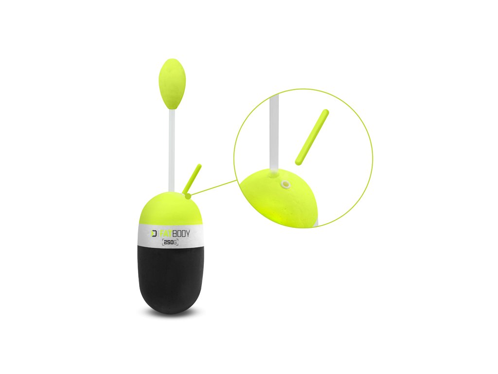 Delphin FatBODY je sumcový splávek, který je díky svému tvaru a vysoké anténě dobře viditelný i na větší vzdálenosti, ve vlnách nebo v nepříznivých podmínkách. Tvar těla jej předurčuje k lovu s většími nástražními rybkami. Splávek FatBODY je vhodný zejména při lovu na trhačku, kde dokáže podržet nástrahu na přesně zvoleném místě. Tělo splávku je vybaveno otvorem na anténu o průměru 4,5mm, kterou můžete během noci nahradit chemickým světlem. Kombinace fluouzelené a černé barvy poskytuje vysokou viditelnost i při nepříznivých podmínkách jako je například mlha nebo silný déšť. Technické parametry: Gramáž: 150g Gramáž: 250gDoplňkové parametry