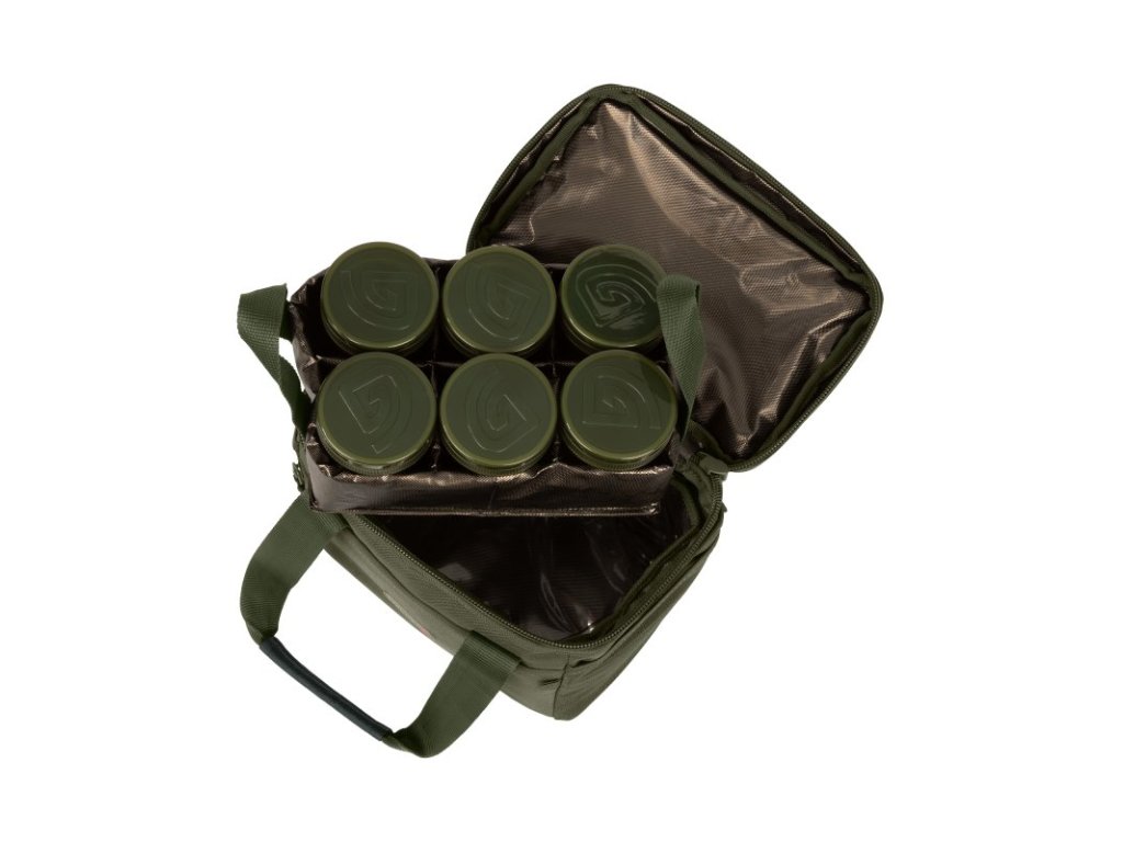 Taška je dodávána s šesti nepropustnými dózami, uloženými v izolovaném, vyjímatelném podnosu, což vám umožňuje uložit další návnady nebo vybavení v hlavní přihrádce, která je vystlaná vysokohustotní, termální podšívkou Chilla a odnímatelným PVC vnitřkem, který lze snadno vyčistit.