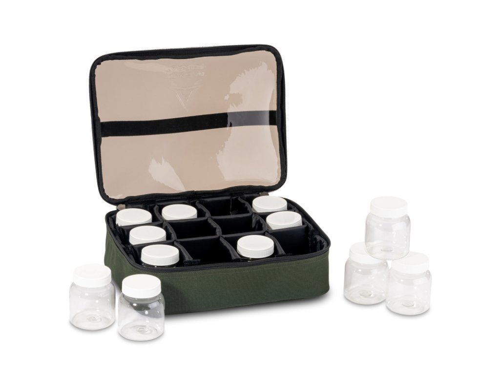 Anaconda Dip & Bait Carrier je úložné pouzdro určené pro přehledné a bezpečné uložení dipů a nástrah. Součástí je 12 těsnících dipovacích dóz s extra těsněním ve víčku, které minimalizuje riziko úniku tekutin. Pouzdro je vyrobené z odolného 600 × 300D polyesteru s PVC povrchovou úpravou a díky vodoodpudivé konstrukci spolehlivě chrání obsah. Praktické madlo usnadňuje přenášení a kompaktní tvar zajišťuje snadné skladování i transport.