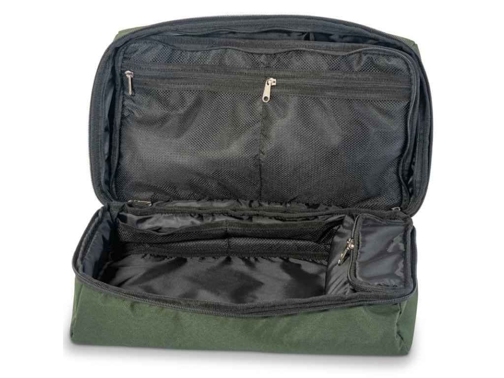 Anaconda Rig Makers Pouch je ideální volbou pro kapraře, kteří chtějí mít vše potřebné pro výrobu návazců přehledně uložené na jednom místě. Nabízí dvě prostorné hlavní komory a uvnitř se nachází oboustranně plnitelná síťovaná kapsa fungující jako přehledná dělící stěna. Pouzdro je vyrobeno z odolného 600 × 300D polyesteru a díky vodotěsnému dnu spolehlivě chrání obsah i při nepříznivých podmínkách.
