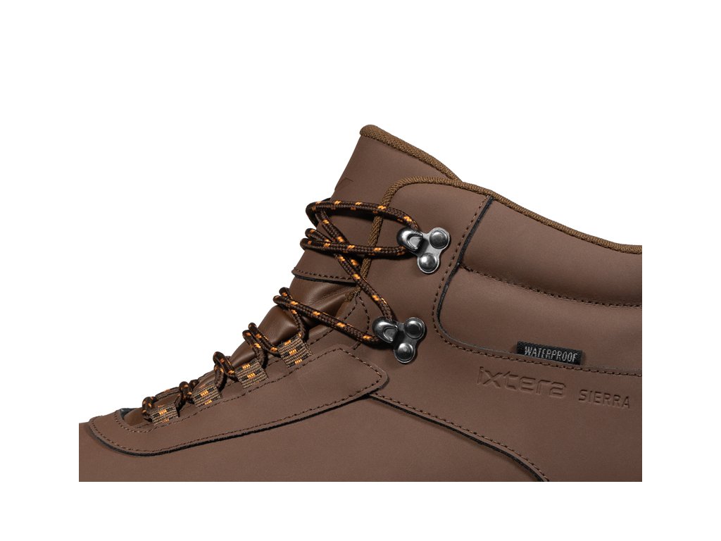Značka IXTERA je zúročením našich mnohaletých zkušeností s vývojem a testováním produktů určených pro pobyt v přírodě. Drtivá většina našich produktů využívá nejmodernějších technologií, procesů a funkčních materiálů tak, abychom vám zaručili maximální komfort v jakýchkoli podmínkách, vždy a všude. Kožené nepromokavé boty Ixtera SIERRA jsou spolehlivou volbou pro každého, kdo hledá odolnou a pohodlnou obuv vhodnou pro každodenní nošení, procházky v přírodě, ale i pro náročnou turistiku. Díky použitým kvalitním materiálům mají boty dlouhou životnost a zároveň nabízí vysoký komfort a dokonalou stabilitu, kterou budete cítit při každém jednom kroku. Svršek je vyroben z kvalitní hovězí kůže, která se vyznačuje mimořádnou trvanlivostí a přirozenou odolností vůči opotřebení. Kůže je ošetřena nepromokavou povrchovou úpravou, která ji chrání a zajistí, že vaše nohy zůstanou v suchu i během nepříznivého počasí. O stabilitu a pohodlí se stará pevná podrážka z kombinace EVA pěny a gumy. EVA pěna snižuje celkovou hmotnost boty a zároveň poskytuje účinné tlumení dopadů, což umožňuje pohodlnou chůzi i po dlouhých hodinách v terénu. Protiskluzový vzor podrážky zaručuje spolehlivý záběr na různých površích, takže se nemusíte obávat ani náročného terénu, jako jsou mokré kořeny či vlhké skály. Vnitřek boty je doplněn o nepromokavou vnitřní ponožku, která umocňuje nepromokavost celé obuvi. Zároveň poskytuje příjemné teplo a stabilní tepelný komfort, díky čemuž jsou boty předurčeny do chladnějšího počasí. Důkladné zpracování doplňují kvalitní detaily – vyvýšený střih a pevné šňůrky umožňují přesné zafixování nohy a předcházejí nechtěným zraněním, zatímco robustní kovové háčky usnadňují rychlé a pevné zašněrování. Na patě se nacházejí praktické taháčky, které zjednodušují obouvání a zouvání. Ixtera SIERRA představuje ideální kombinaci vlastností potřebných pro víceúčelovou outdoorovou obuv. Ať už se vypravíte na turistiku nebo do města, boty SIERRA vám poskytnou maximální spolehlivost, ochranu a komfort při každém kroku.Doplňkové parametry