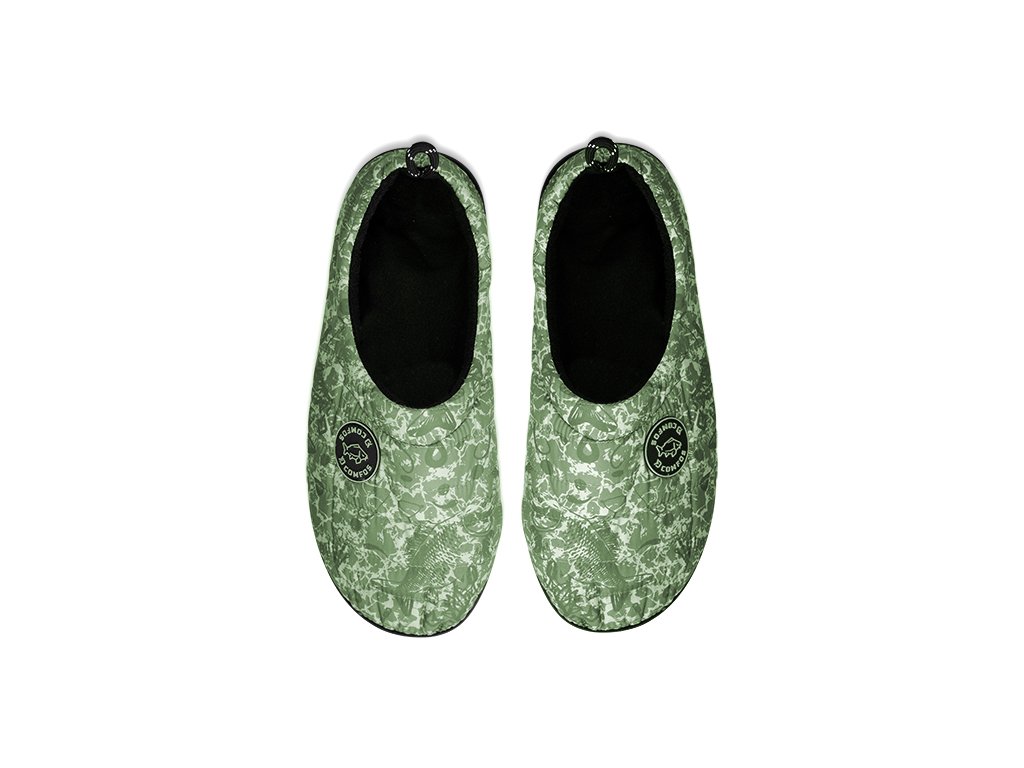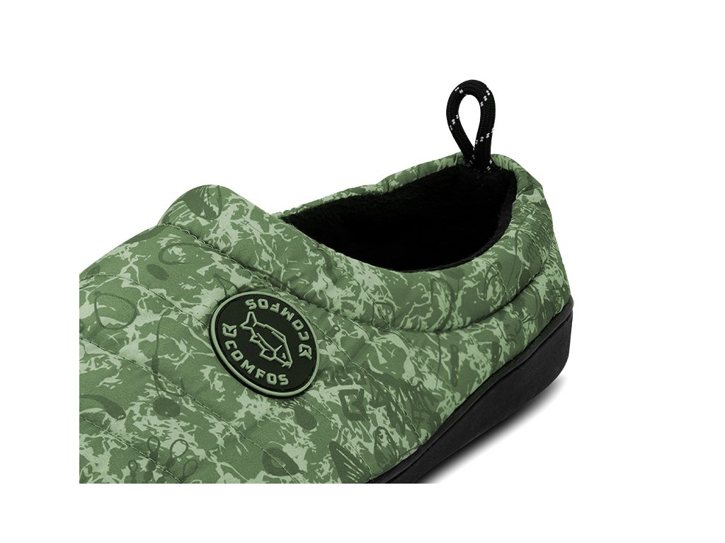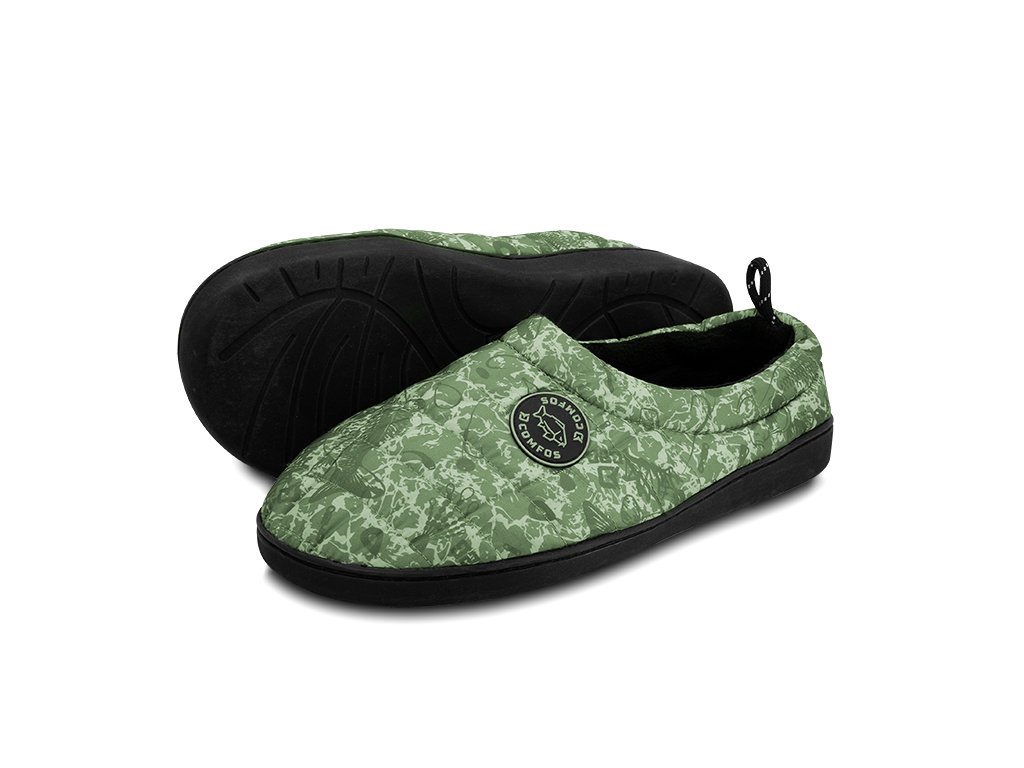 Pantofle Comfos v originální kamufláži C2G jsou navrženy speciálně pro milovníky rybolovu, kempování, turistiky a pro všechny, kteří se rádi pohybují v přírodě. Tyto pantofle jsou lehké, kompaktní a snadno je přibalíte do vašeho zavazadla, což z nich činí ideálního partnera na dobrodružství mimo civilizaci. Pantofle jsou navrženy s důrazem na pohodlí, o což se stará pohodlná stélka, která poskytuje úlevu vašim unaveným nohám po dni plném aktivit. Odolná a robustní pogumovaná podrážka poskytuje dostatečný grip s terénem, což je neocenitelné v případě potřeby pohybu mimo stan či bivak, například během neočekávaného záběru ryby. Povrch pantoflí je snadno omyvatelný a odolný vůči špíně a prachu. Kromě všech zmíněných výhod jsou pantofle velmi stylové, a díky modernímu designu se v nich budete cítit dobře v přírodě, ale také při relaxu v kempu.Doplňkové parametry