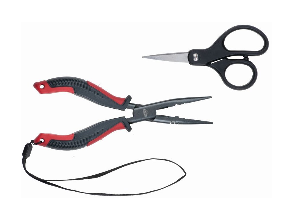 Rybársky set, ktorý obsahuje kliešte a nožnice. Kliešte a nožnice sú vyrobené z nerezovej ocele s antikoróznou úpravou.