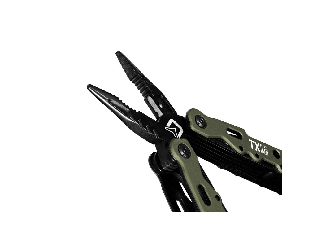 Do posledního detailu propracované kleště s velkým množstvím funkcí, které vás zachrání v nejedné situaci. Delphin TaktyX 13 jsou vyrobeny z kvalitní nerezavějící oceli Inox. Tak jak napovídá číslice v názvu, disponují až 13-ti různými nástroji resp. funkcemi. Kromě klasických kombinovaných kleští se zde nachází nůž, pilka, otvírák na konzervy a láhve, pilník, nůžky na drát, děrovačka a 4 různé šroubováky. Každý z těchto nástrojů se po vyklopení automaticky zajistí pomocí spolehlivého systému, díky čemuž nehrozí zaklápění během používání. Díky množství funkcí si kleště hravě poradí s různými opravami, přípravou návazců, jídla, ale i vyjímáním háčků z rybích tlam. Jsou tedy vhodné pro všechny rybáře, outdoorové nadšence, ale i pravé domácí kutily. Multifunkční kleště TaktyX13 jsou dodávány s praktickým pouzdrem, které lze snadno upevnit na opasek.Doplňkové parametry