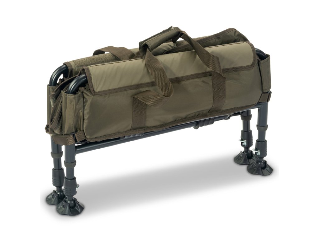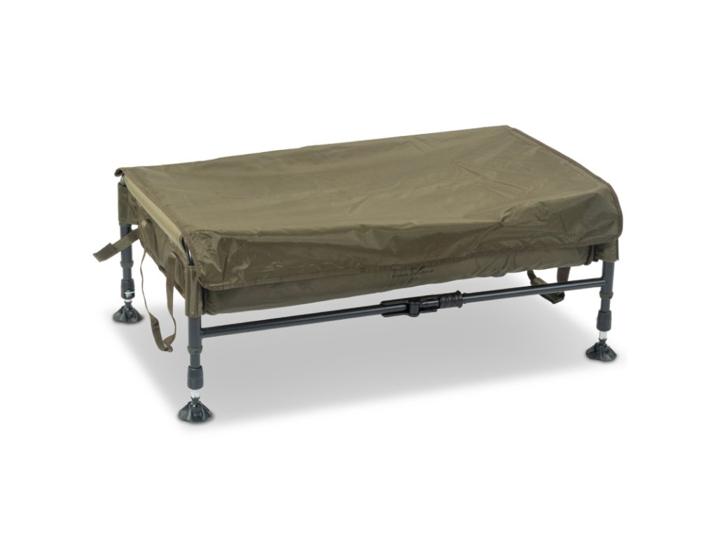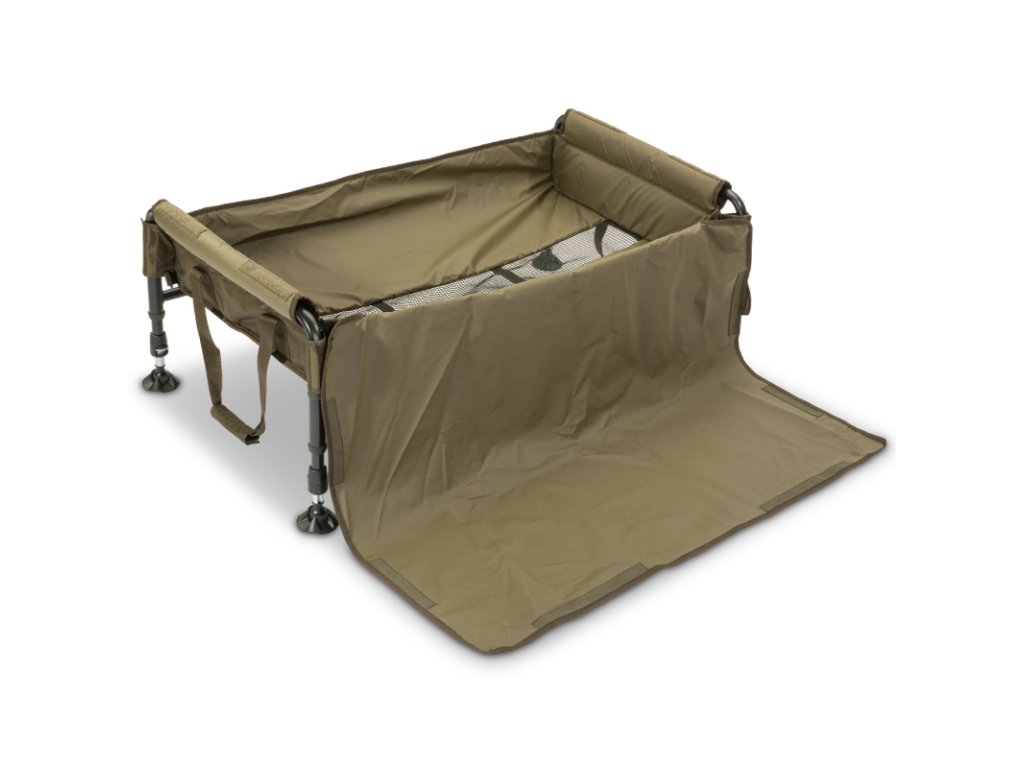 Součástí je krycí plachta se suchým zipem, která chrání rybu a zabraňuje vyskočení při manipulaci. Podložka je vybavena pevnými transportními madly a bočními pásky na suchý zip, díky nimž lze stáhnout celý celek do velmi malého transportního tvaru.