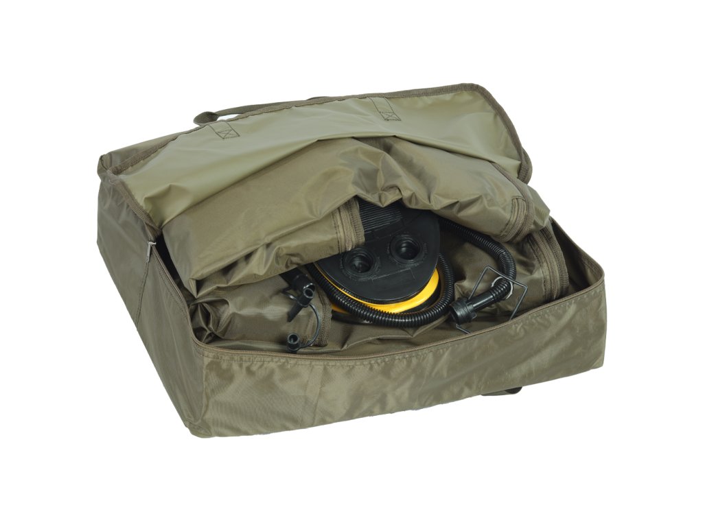 Jednoduchá konstrukce duše, která se rychle nafoukne a vyfoukne pomocí speciálního ventilu. Kolébkový tvar zajistí bezpečnost vašeho úlovku, aby z podložky nevyskočil. Síťované dno zajišťuje dostatek kyslíku pro ryby a lze pro použití podložky na břehu vložit dodávanou měkčenou obdélníkovou matraci. Díky svému promyšlenému designu a tvaru, můžete z každé strany otevřít otvory, které jsou na zip a rychle a bezpečně vypustit rybu zpět do vody. Vyrobeno z nylonu 210D, který má povrchovou úpravu z měkčeného PVC. Je dodáváno včetně nožní pumpy k nafouknutí podložky a přepravní taškou. Rozměry: 122x70x32/53 cmTransportní rozměr: 47x14 cmHmotnost: 4,55 kgOdkaz na video: http://www.youtube.com/watch?v=HJRiDeqMy-cDoplňkové parametry