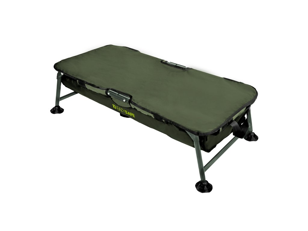 Při navrhování tohoto produktu byl cíl jasný. Přinést na trh vaničku za bezkonkurenční cenu, která bez problémů zvládne i ty největší ryby. Výsledek? Delphin EazySAFE! Základ podložky tvoří velmi pevná železná konstrukce s průměrem trubek až 22 mm. Díky tomu má vanička výbornou stabilitu a nehrozí její převrácení, případně poškození při manipulaci s úlovkem. Použitá látka s pogumovaným povrchem má několik výhod. Po ukončení lovu ji stačí do sucha vytřít a není tak nutné dlouho čekat dokud vyschne. Navíc je velmi snadno omyvatelná a neabsorbuje do sebe nepříjemně pachy, které se mohou následně šířit při transportu ve vašem autě. Celá vanička je velmi pevná a při extrémních testech bez problémů zvládla udržet statické závaží o váze až 75kg! Na obou krajích je všitá sítová látka, přes kterou zevnitř lehce odteče voda. EAZYSAFE také disponuje látkou na překrytí, která je opatřena suchými zipy. Můžete tak v ní rybu uzavřít, pokud si například potřebujete připravit fotoaparát, případně jít nabrat vodu na polití úlovku. Nohy jsou opatřeny kloubovými patkami, které se přizpůsobí terénu a zamezí zaboření do země v případě měkčího podkladu. Při navrhování jsme však mysleli i na transport, což je další silná stránka tohoto produktu. Ve středu je konstrukce důmyslně předělena a tak ji stačí jednoduše přeložit napůl a pomocí rukojetí pohodlně přenášet. V produktu Delphin EAZYSAFE získáte za výbornou cenu jednoduchou, ale zato důkladně promyšlenou a 100% funkční vaničku, v níž se o svůj úlovek nebudete muset nikdy obávat. Technické parametry: Vnější rozměry: 100x50x30cm Rozměr lůžka: 95x45x20cm Transportní rozměry: 50x50x12cm Hmotnost: 3,60kgDoplňkové parametry