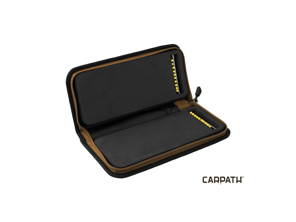 Delphin AREA je špičkově zpracovanou sérií tašek určených pro kaprový rybolov v neopakovatelném designu CARPATH. Bezchybné šití, silné zipy, ergonomické střihy. To je Delphin AREA! Pouzdro Rig slouží k uložení kaprařských nebo i jiných návazců. Pouzdro je jednoduché konstrukce, avšak již dílenské zpracování svědčí o jeho kvalitě a životnosti. Z vnější strany je pouzdro kompletně vyztužené, potažené naimpregnovaným materiálem. Z vnitřní strany je vrstva PVC na níž je upevněn tvrzený molitan. Také se zde nacházejí špendlíky pro upevnění. Těch je 20ks a mají kulaté hlavičky, které se neotlačí do pěny tak, jak je tomu v případě použití hranatých. Ty mají často za následek poškození pěny, což u kulatých nehrozí. Kombinace vnějšího materiálu s vnitřní vrstvou PVC zajistí, že vaše návazce budou vždy suché. Celé pouzdro je osazeno zipem s kovovým běžcem, který zajišťuje jeho dlouhou životnost. Technické parametry: Rozměry: 30x14x4cm Kapacita pouzdra: 20ks návazce o max. délce cca 24,5cm Kamufláž CARPATH je unikátním a patentovaným designovým vzorem, který v sobě skloubil maskovací vizuál kamufláže a siluety kaprů, které tuto kamufláž tvoří. Tento jedinečný a neopakovatelný návrh pochází kompletně z dílny značky Delphin a posouvá hranice vašeho rybářského vybavení do zcela nové dimenze.Doplňkové parametry