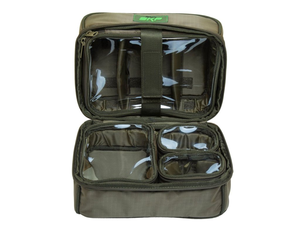 Puzdro je dodávané vrátane štyroch menších puzdier, ktoré majú priehľadné, sľudové vrchné okno, vďaka ktorému budete mať úplný prehľad o uložených veciach. Menšie puzdrá sú samozrejme možné vybrať a používať samostatne.