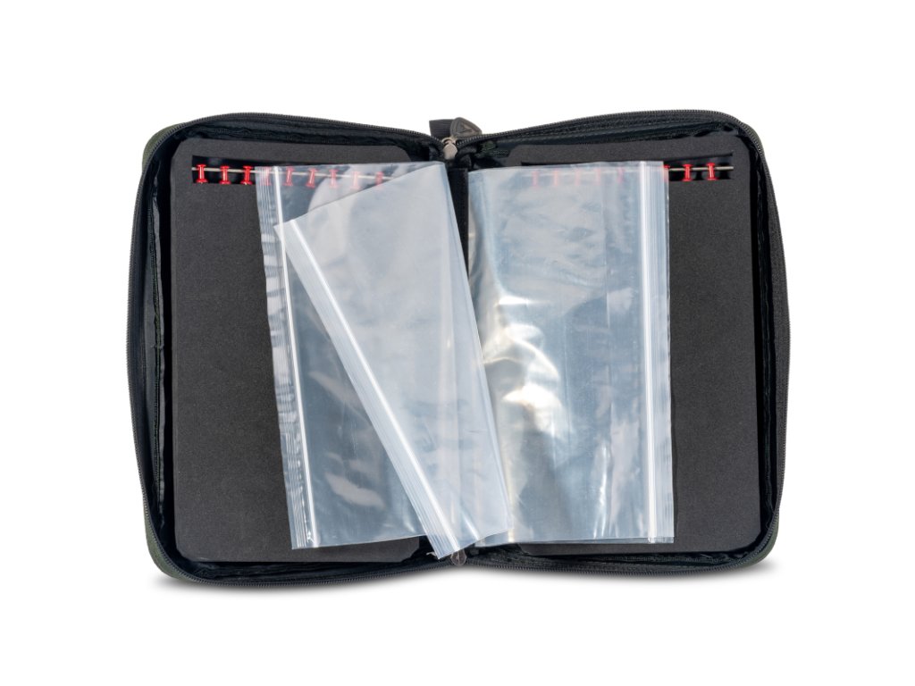 Anaconda Multi Rig Wallet je praktické pouzdro na hotové návazce. Návazce lze upevnit z obou stran na EVA desky, nebo je uložit do průhledných sáčků se zipem. Vnější kapsa nabízí prostor i pro další návazcový materiál. Kompaktní tvar usnadňuje přenášení a přehlednou organizaci.