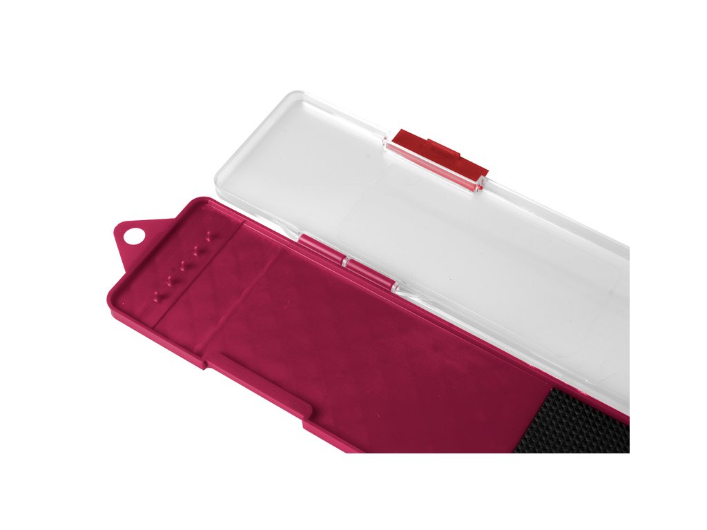 Box na feederové návazce Delphin ATOMA je praktická pomůcka na odkládání hotových návazců, která by neměla chybět ve výbavě žádného rybáře. Tento plochý box je vyroben z plastu. Jeho spodní část je vínové barvy, doplněná o plastové výběžky, na které upevníte návazce a o EVA pěnu, kde můžete zapíchnout háčky. Vrchní část je z průhledného plastu, abyste měli dokonalý přehled o umístění návazců. Uzavírá se dvěma klipy.Doplňkové parametry
