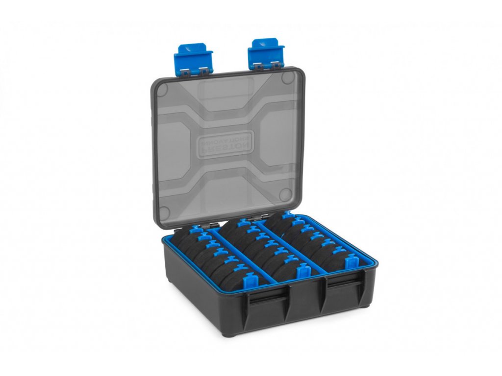 Luxusní plastový box, který obsahuje 21 pěnových EVA koleček, sloužící pro uložení dlouhých návazců zejména při lovu na feeder. Pro snadnou orietaci je každé kolečko opatřeno štítkem, kde si můžete napsat velikost a typ háčku, průměr vlasce a délku návazce. Box je vyroben s velmi kvalitního materálu a má ztmavené polopropustné víčko, které zabraňuje slunečním paprskům, aby přímo svítily na Vaše návazce.