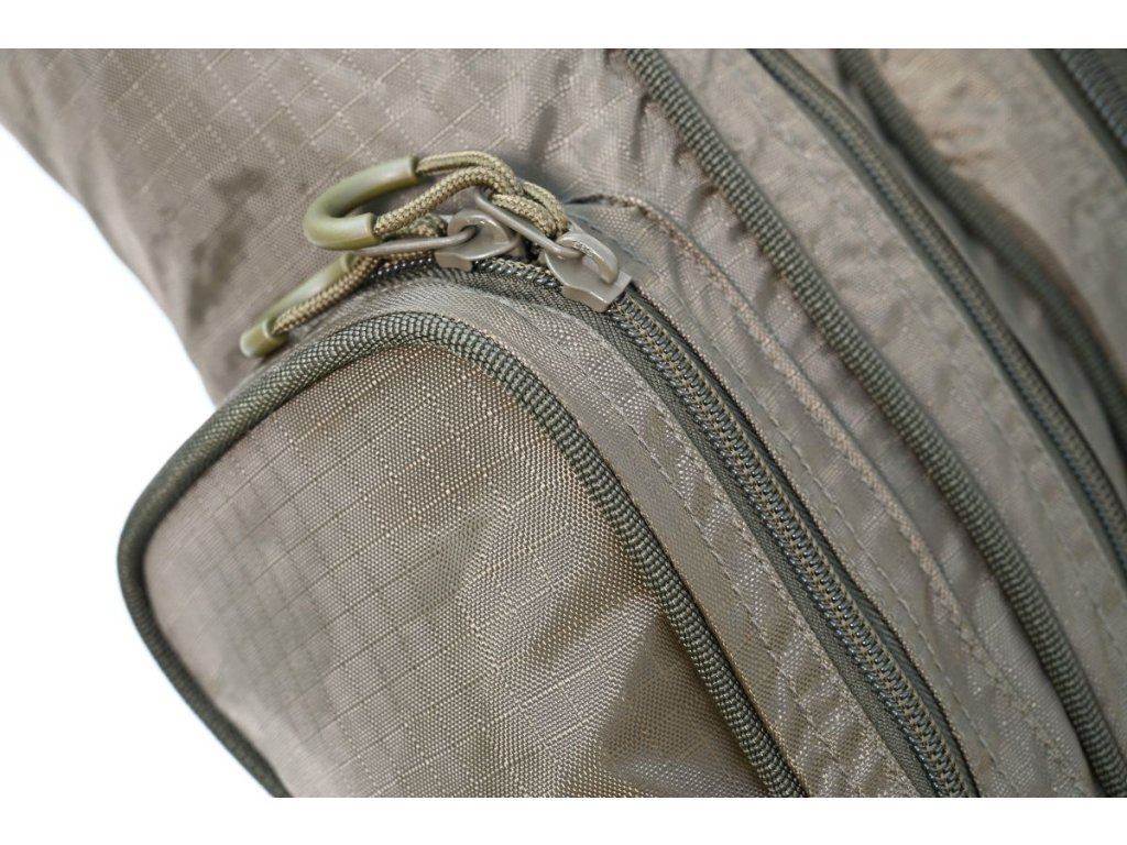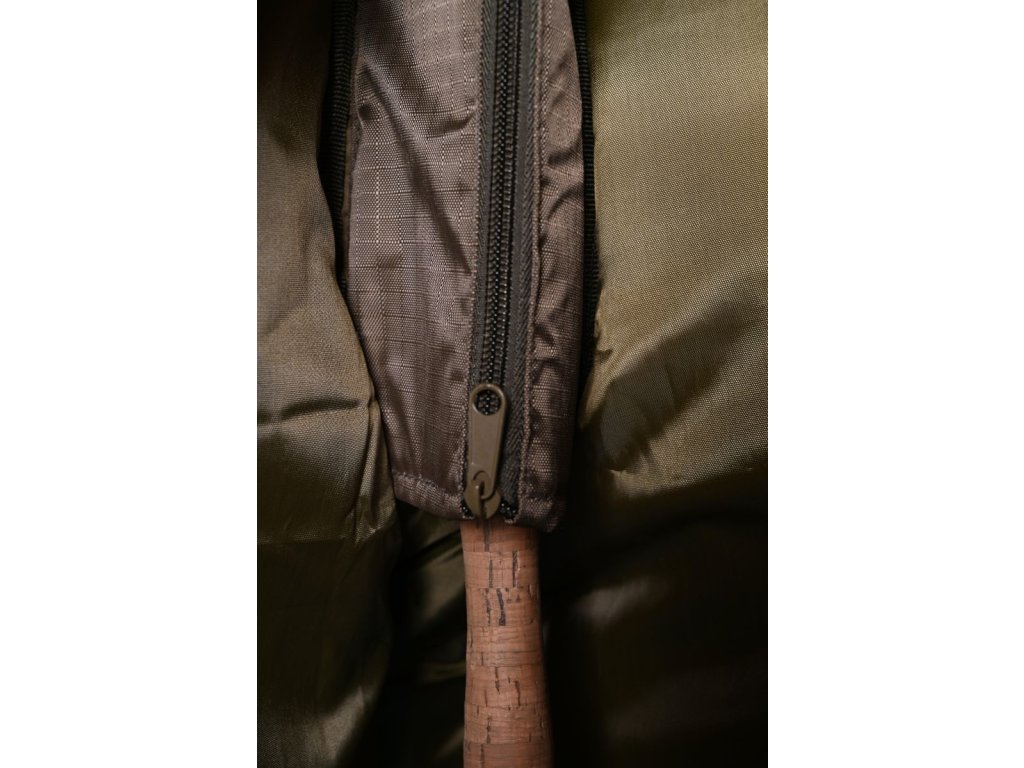 Po boku, po celej dĺžke sa nachádzajú zipsy na jednoduché uloženie prútov do puzdra. Bočné vrecká poskytujú miesto pre dáždnik, podberák, vidličky alebo dištančné palice. Priestor pre navijaky je dostatočne veľký, aby pojal navijaky o veľkosti 7000 alebo 8000.