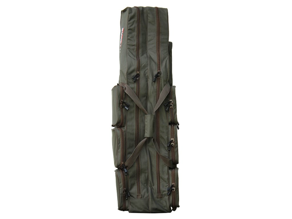 Dvoukomorový obal na pruty pojme většinu nářadí na vaši rybářskou výpravu. Šířka komory je 11cm, výška 21cm se v 80cm zužuje na 11cm. To vytváří dostatečný prostor na naviják nasazený na prutu. Na jedné straně je dlouhá kapsa o rozměru 89x9x5cm na podběrák a nad ní jsou tři kapsy 20x10x5cm na drobnosti, nebo na krabičky Versus typu VS506, VS706 a VS806. Na druhé straně jsou tři kapsy o rozměru 20x20x5cm do kterých pasují krabičky typu VS3010NDM,VS3010ND a VS3010NS. Všude jsou použity velké pevné zipy s dvěma jezdci, které mají místo kovové rukojeti provázek s plastovým gripem. Obal je ušit z pevného Nylon Oxford materiálu, který je velmi pevný a odolný.
