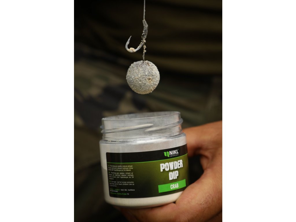 Pro maximální účinnost namočte nástrahu ve vodě či tekutém dipu, nechte okapat a následně obalte v práškovém dipu a nechte zavadnout cca 2 minuty. Tento postup je možné opakovat vícekrát pro extra dlouhou atraktivitu.
