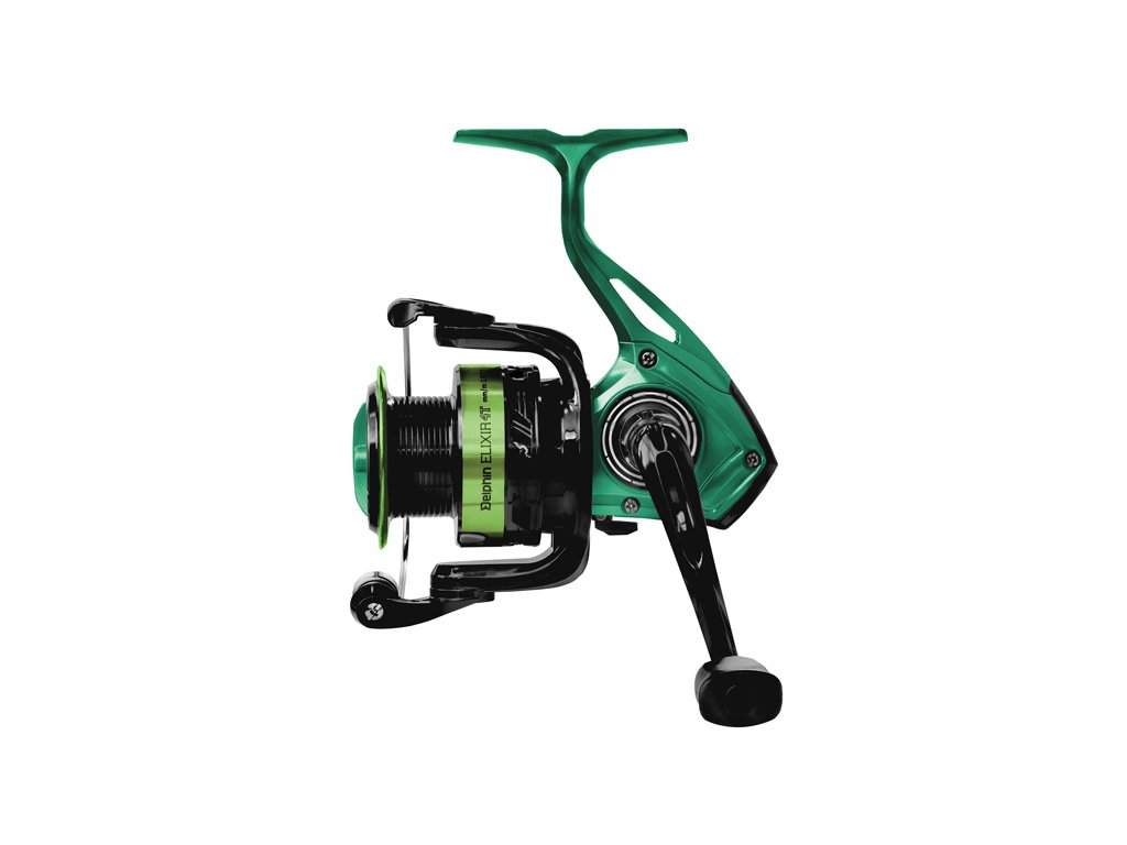 Designově nevšední naviják s přední brzdou za příjemnou cenu. To je Delphin ELIXIR, který svým zeleno-černým provedením vyčnívá z řady kompaktních navijáků, vhodných na přívlač, feeder či lov se splávkem. Základem navijáku je tělo z lehkého kompozitového materiálu, který díky své odolnosti zaručuje dlouhou životnost. Mechanismus s vyváženým rotorem a převodovým poměrem 5.1:1 (2T,3T), 5.2:1 (4T,5T) se stará o plynulý chod a důkladné ukládání vlasce na kovovou cívku. Odlehčená klička i cívka navijáku přispívají k redukci celkové hmotnosti, díky čemuž je ELIXIR skvělým společníkem i při celodenním lovu. Naviják je vyráběn v různých velikostech, což jen podtrhuje jeho univerzálnost. Ke každé velikosti je také možné dokoupit další cívky podle potřeby. Technické parametry: Model: Delphin ELIXIR 2T Kapacita navijáku mm/m: 0.14/390, 0.16/300, 0.18/240 Převodový poměr: 5.1:1 Počet ložisek: 3+1 Hmotnost: 235g Model: Delphin ELIXIR 3T Kapacita navijáku mm/m: 0.16/350, 0.18/275, 0.20/230 Převodový poměr: 5.1:1 Počet ložisek: 3+1 Hmotnost: 244g Model: Delphin ELIXIR 4T Kapacita navijáku mm/m: 0.18 375, 0.20/300, 0.22/245 Převodový poměr: 5.2:1 Počet ložisek: 3+1 Hmotnost: 270g Model: Delphin ELIXIR 5T Kapacita navijáku mm/m: 0,20/450, 0,22/370, 0,24/310 Převodový poměr: 5.2:1 Počet ložisek: 3+1 Hmotnost: 288gDoplňkové parametry