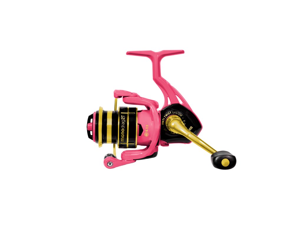 Naviják od společnosti Delphin, na který netrpělivě čekaly zejména fanynky produktů ze série QUEEN. Tak jak je charakteristické pro tuto řadu určenou něžnému pohlaví, i QUEEN MonoDRAG je nezaměnitelný díky své růžové barvě. Ta je však v tomto případě velmi pohledně kombinovaná se zlatými a černými doplňky. Samotný chod navijáku je velmi hladký a plynulý, na čemž má nepochybně největší zásluhu mechanismus s ideálním převodovým poměrem 5.1:1 a soustava 5+1 kuličkových ložisek. Pevné tělo zaručuje vynikající odolnost a dlouhou životnost navijáku. Pogumovaná rukojeť na klice dokonale sedne mezi prsty a umožňuje pohodlnou manipulaci během lovu. Výhodou je také odhozová hrana na kovové cívce, díky které budou vaše hody nejen přesnější, ale také o něco delší. Za účelem maximálně přesných hodů je možné využít také kovový klip na uchycení vlasce. Citlivá brzda disponuje dostatečně velkou silou potřebnou k zastavení unikající ryby. QUEEN MonoDRAG je vyráběn ve velikostech 2T a 3T a nepochybně bude skvostem výbavy každé rybářky. Technické parametry: Model: Delphin QUEEN MonoDRAG 2T Kapacita navijáku mm / m: 0.14 / 200, 0.16 / 155, 0.18 / 130 Převodový poměr: 5.1:1 Počet ložisek: 5+1 Hmotnost: 250g Model: Delphin QUEEN MonoDRAG 3T Kapacita navijáku mm / m: Převodový poměr: 5.1:1 Počet ložisek: 5+1 Hmotnost: 284gDoplňkové parametry