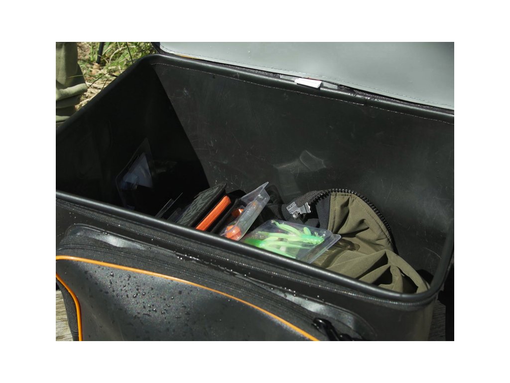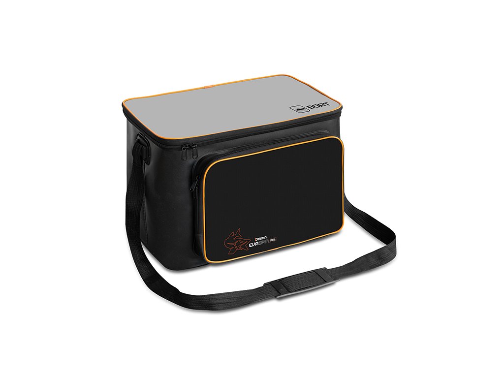 Praktická přívlačová taška vyrobená z kvalitního EVA materiálu, poskytující dostatek místa pro uskladnění různého vybavení a nástrah, které budete potřebovat při lovu dravců. Její velikost z ní činí ideálního společníka pro lov ze člunu, kdy je třeba před vodou uschovat množství rybářského vybavení. Díky nepromokavému EVA materiálu a kvalitně svařeným švům, Delphin EvaSPIN BOAT spolehlivě ochrání veškerý obsah i v nepříznivých deštivých podmínkách. Kromě odolnosti vůči vodě je tento materiál také snadno omyvatelný a neabsorbuje pachy, což umožňuje bezpečně přenášet také různé tekutiny, jako například dipovací spreje. Na přední straně se nachází zipovatelná kapsa, která poskytuje extra prostor pro drobnější příslušenství, což ještě více zvyšuje praktické využití tašky. Přívlačové tašky EvaSPIN mají moderní design v kombinaci černé a šedé barvy, kterou doplňují oranžové prvky jako například logo vyobrazující štiku. Pro pohodlný a snadný transport je taška vybavena délkově nastavitelným ramenním popruhem. Do vnitřního prostoru tašky lze uložit různé plastové boxy, jako například Delphin TBX One 350-8P Clip, přičemž do přední kapsy ideálně zapadne například krabice Delphin TBX One 225-15P, ale i další. Technické parametry: Rozměr: 46x30x31cm Rozměr přední kapsa: 34x5x24cm Objem: 43LDoplňkové parametry