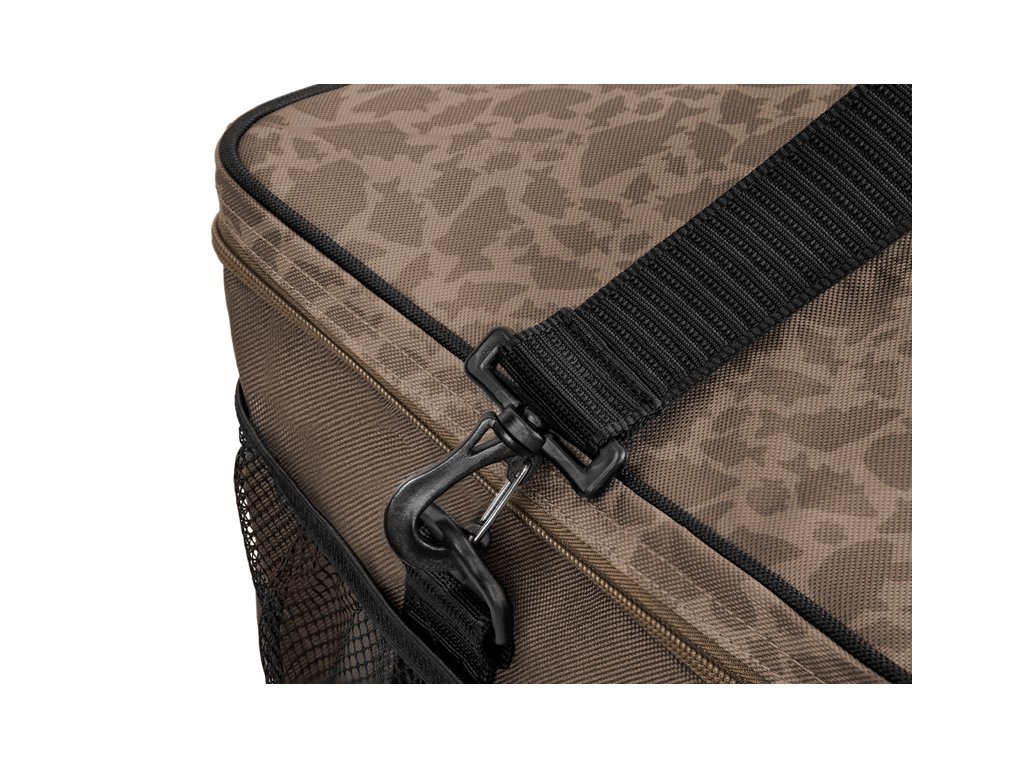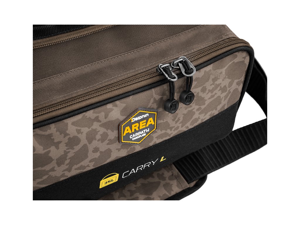 Delphin AREA je špičkově zpracovanou sérií tašek určených pro kaprový rybolov v neopakovatelném designu CARPATH. Bezchybné šití, silné zipy, ergonomické střihy. To je Delphin AREA! AREA CARRY CARPATH L doplňuje rodinu CARRY CARPATH o rozměrově kompaktnější, praktickou transportní tašku, určenou pro uložení a přenos různého kaprařského příslušenství, či oblečení. Díky svým rozměrům poskytuje objem až 35 l. Tak jako všechny ostatní tašky v této řadě i CARRY Carp L byla navržena s důrazem na praktičnost, trvanlivost a odolnost vůči nepříznivým povětrnostním vlivům. Taška je ze všech stran důkladně polstrovaná pro maximální ochranu příslušenství uvnitř. Celá spodní část a boky do výšky až 5 cm jsou opatřeny kvalitním nepromokavým materiálem. Nehrozí tak znečištění a následně znehodnocení produktu při položení například na mokrou nebo špinavou zem. Dvě síťované kapsy po bocích a jedna velká uvnitř umožňují uložení dalšího příslušenství, o kterém budete mít vždy dokonalý přehled. Taška disponuje také praktickou kapsou s dvěma zipy na předním panelu. Samotný vnitřek je navržen tak, aby do něj bylo možné s lehkostí vkládat další tašky série AREA. Maximální komfort zajišťuje mimořádně měkké polstrování ramenního popruhu, či praktická rukojeť umožňující přenos tašky v ruce. Celkový design samozřejmě dotváří oblíbená CARPATH kamufláž v kombinaci s černými prvky, efektní logo či piktogram v přední části. Technické parametry: Rozměr tašky: 42x35x30cm Čistý rozměr vnitřního prostoru: 40x30x27cm Rozměr přední kapsa: 30x20x5cm Rozměr boční kapsy: 28x20cm Vnitřní síťovaná kapsa: 40x30cm Objem: 35lDoplňkové parametry