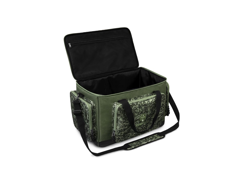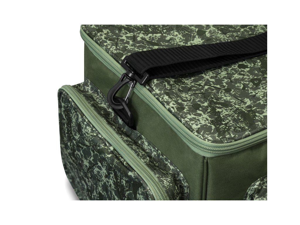 Delphin SPACE je označení pro exkluzivní sérii tašek z dílny značky Delphin. Vyznačuje se špičkovým zpracováním, kvalitními zipy, ale zejména výjimečným designem s použitím C2G kamufláže. CarryALL 2XL v provedení C2G je praktická taška pro uložení a transport rybářského příslušenství či oblečení. Naprojektována byla s důrazem na praktičnost, trvanlivost a odolnost vůči nepříznivým povětrnostním vlivům. Ze všech stran je důkladně polstrována 6mm silnou vrstvou, pro maximální ochranu výbavy uvnitř. Díky polstrování stěn je mimořádně stabilní i v případě, že je zcela prázdná. Celá spodní část a boky do výšky až 5 cm jsou opatřeny kvalitním nepromokavým materiálem. Nehrozí tak znečištění a následně znehodnocení produktu při položení například na mokrou nebo špinavou zem. Taška navíc disponuje 3 vnějšími zipovatelnými kapsami pro uložení dalšího příslušenství. Uvnitř najdete ještě jednu velkou síťovou kapsu. Samotný vnitřek je navržen tak, abyste do něj s lehkostí ukládali další tašky série SPACE či AREA. Maximální komfort dotváří mimořádně měkké polstrování popruhu pro zavěšení na rameno či praktické rukojeti pro nošení tašky v ruce. Technické parametry XXL: Rozměr tašky: 60x35x36cm Čistý rozměr vnitřního prostoru: 55x29x32cm Rozměr přední kapsa: 35x25x5cm Rozměr boční kapsy: 25x25x5cm Vnitřní síťovaná kapsa: 48x29cm Stylová patentovaná kamufláž z dílny značky Delphin pod označením C2G má mnoho podob a úhlů pohledu. Přesně tak i její název, který můžeme volně přeložit jako Carpath 2. generace, což přímo odkazuje na jejího předchůdce, ale můžeme ho číst i jako Carpath to Green, tedy přechod myšlenky Carpathu do zelené barvy. Její jedinečnost a nezaměnitelnost spočívá v prvcích, ze kterých je vytvořena. Na první dojem jde o kamufláž tvořenou třemi různými odstíny zelené. Všechno se však změní při detailnějším pohledu, kdy si všimnete siluety kaprů, komponentů kaprařské montáže a log značky Delphin spolu s označením C2G. Díky tomuto neopakovatelnému provedení se vaše rybářská výbava okamžitě stane jedinečnou a maximálně originální.Doplňkové parametry