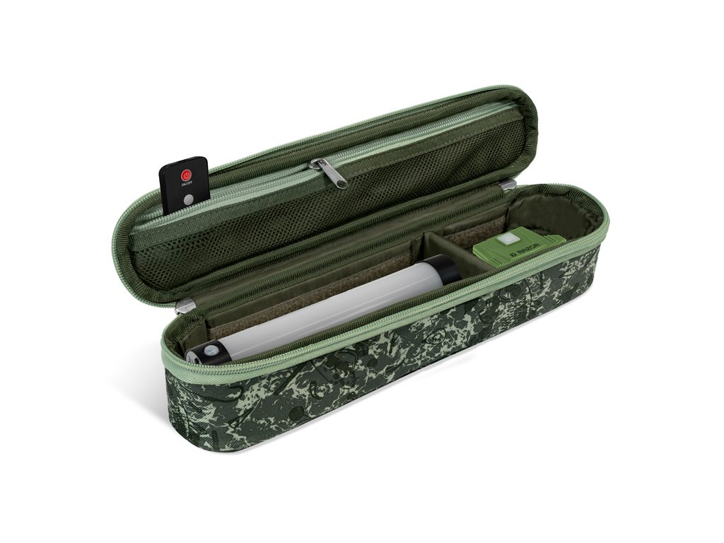 Delphin SPACE je označení pro exkluzivní sérii tašek z dílny značky Delphin. Vyznačuje se špičkovým zpracováním, kvalitními zipy, ale zejména výjimečným designem s použitím C2G kamufláže. Pokud často neumíte najít ve vaší výbavě to správné místo na svítidla jako čelovky, či trubicové bivakové světlo a obvykle je jen tak hodíte mezi ostatní věci, tak jistě oceníte Delphin Light SPACE C2G. Jedná se o důmyslně navrženou tašku, jejíž boční a spodní stěny jsou tvrzené, čímž budou vaše svítidla vždy důkladně chráněna před znehodnocením či nechtěným zapnutím. Vnitřní prostor lze přizpůsobit pomocí odnímatelné přepážky na suchý zip a je tedy jen na vás jak si jej upravíte na základě toho, co uvnitř chcete přenášet. Polstrované víko je zevnitř opatřeno praktickou síťovou kapsou na zip, do které můžete uložit další drobné příslušenství ke svítidlům jako baterky, konektory či nabíjecí kabely. Technické parametry: Vnější rozměry: 35x8x7cm Rozměr vnitřní kapsy: 32x6 cm Stylová patentovaná kamufláž z dílny značky Delphin pod označením C2G má mnoho podob a úhlů pohledu. Přesně tak i její název, který můžeme volně přeložit jako Carpath 2. generace, což přímo odkazuje na jejího předchůdce, ale můžeme jej číst i jako Carpath to Green, tedy přechod myšlenky Carpathu do zelené barvy. Její jedinečnost a nezaměnitelnost spočívá v prvcích, ze kterých je vytvořena. Na první dojem jde o kamufláž tvořenou třemi různými odstíny zelené. Všechno se však změní při detailnějším pohledu, kdy si všimnete siluety kaprů, komponent kaprařské montáže a log značky Delphin spolu s označením C2G. Díky tomuto neopakovatelnému provedení se vaše rybářská výbava okamžitě stane jedinečnou a maximálně originální.Doplňkové parametry