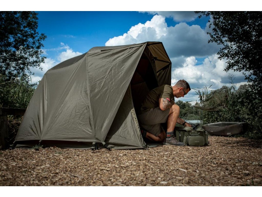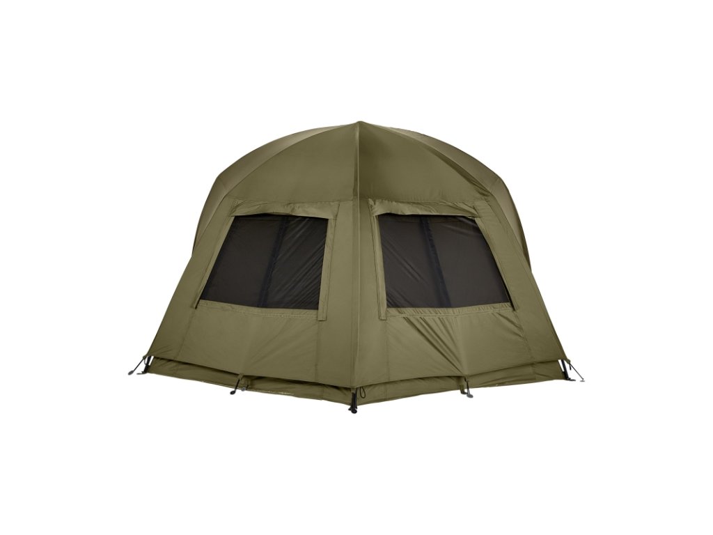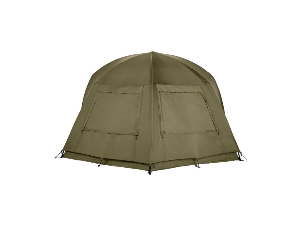 Díky své konstrukci lze tento přehoz jednoduše upevnit na bivak pomocí třech úchytů na přední straně. Následně už stačí pouze došponovat po obvodu pomocí kolíků. Okna na přehozu přesně odpovídají oknům na bivaku, díky čemuž bylo docíleno maximálnímu proudění vzduchu skrz bivak, což oceníte hlavně v horkých letních měsících. Tento přehoz navíc pomůže udržovat v bivaku v létě nižší teplotu. Dále je přehoz na přední straně vybaven dvěma úchyty na pruty a okapem, díky kterému bude voda stékat pouze po stranách.