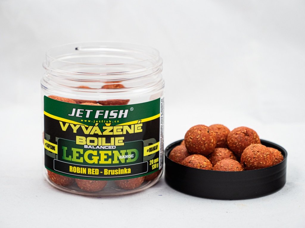 JET FISH 250ml-20mm Legend range Vyvážené boilie : ROBIN RED_BRUSINKA