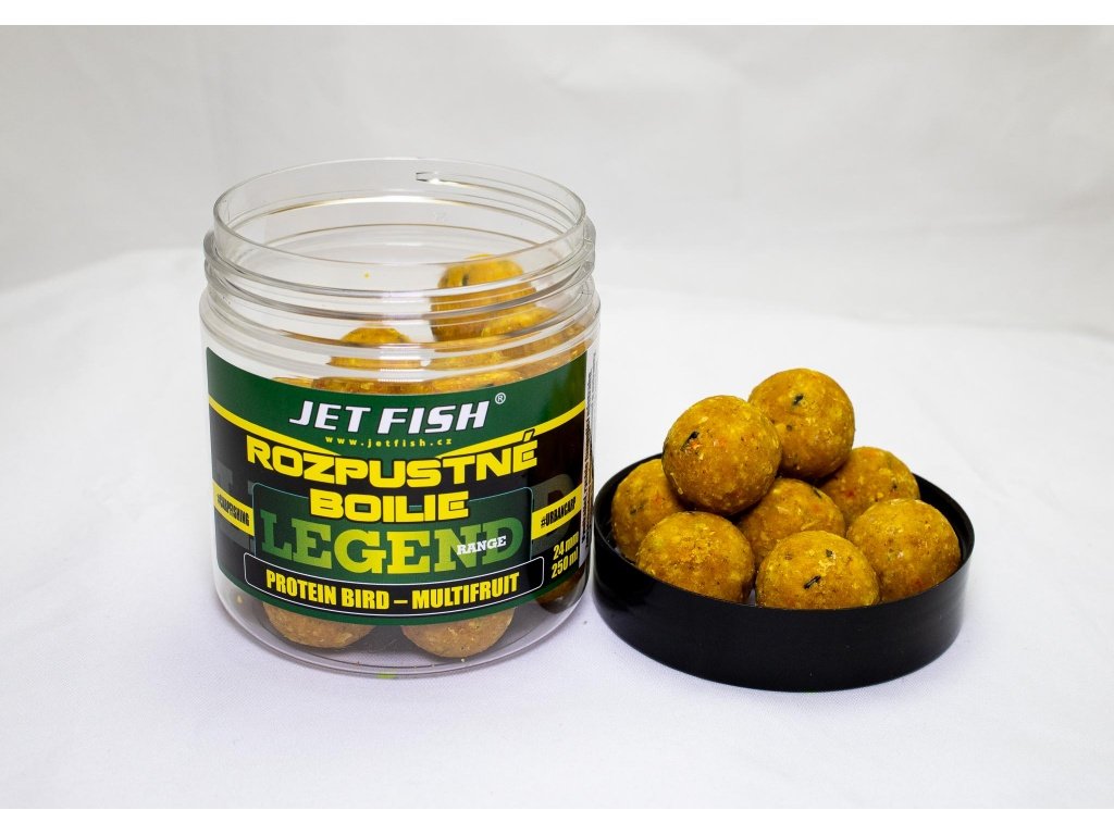 JET FISH 250ml-24mm Legend Range - Rozpustné boilie : PROTEIN BIRD - MULTIFRUIT