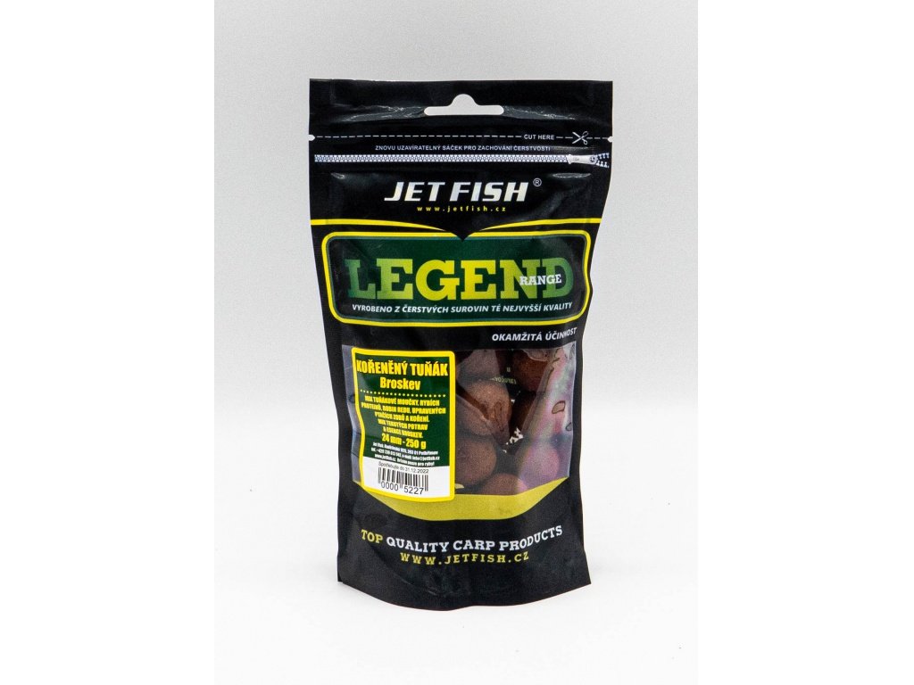 JET FISH Legend Range boilie 250g - 24mm : KOŘENĚNÝ TUŇÁK - BROSKEV