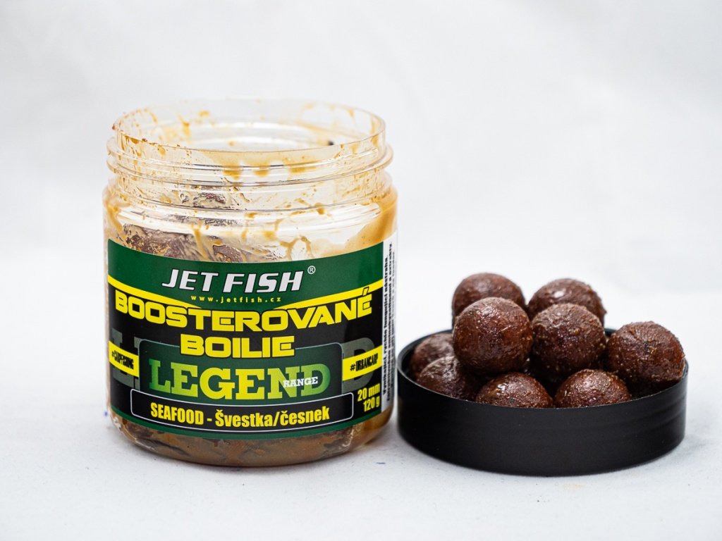 JET FISH Legend Range - Boosterované boilie 250ml - 20mm : SEAFOOD - ŠVESTKA / ČESNEK