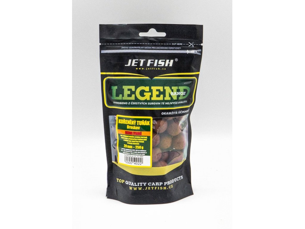 JET FISH Legend Range - Extra tvrdé boilie 250g - 20mm : KOŘENĚNÝ TUŇÁK - BROSKEV