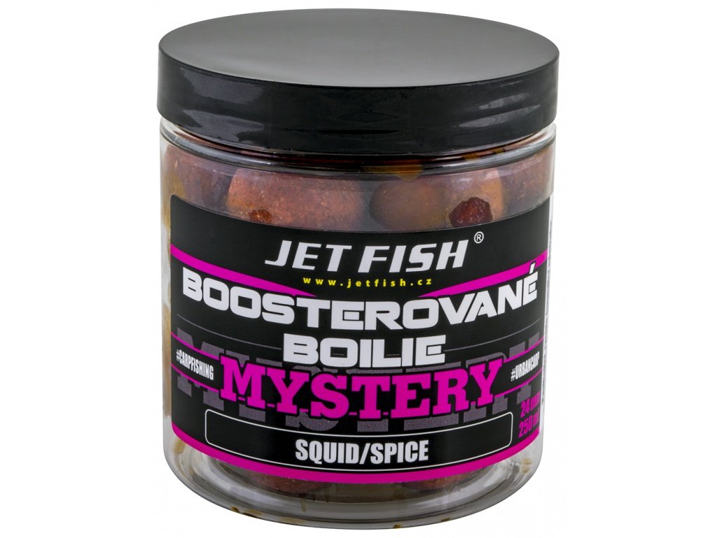 JET FISH Mystery - Boosterované boilie 250ml - 24mm : SQUID / SPICE