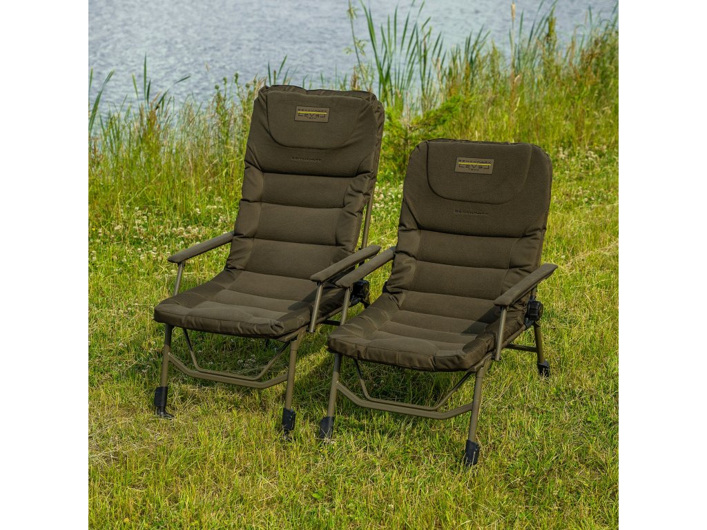 Křeslo Benchmark LevelTech Recliner Chair je navrženo s tím největším důrazem na pohodlí. Na křeslo je použita matrace z paměťové pěny s fleesovou horní vrstvou. Křeslo nabízí pohodlí pro části těla, pro které je to nejvíce potřeba.Náš nový unikátní systém nohou Level Tech zajišťuje skvělou stabilitu, velkou spolehlivost, a hlavně jednoduchost nastavování výšky křesla. Systém Level Tech se také vyznačuje opravdu velkými patkami proti zaboření do bláta, které zajišťují skvělou stabilitu na jakémkoliv terénu.Křeslo Benchmark LevelTech Hi-Back Recliner je vybaveno vícebodovým polohovacím systémem, díky kterému je možné si křeslo přizpůsobit do požadované polohy a vždy si budete moci dopřát maximální pohodlí. Křeslo je vybaveno polstrovanými opěrkami, které nabízí oporu rukou při delším sezení. Zvýšená opěrka hlavy jen podtrhuje pohodlnost tohoto křesla, dnes nenajdete na rybářském trhu luxusnější křeslo.