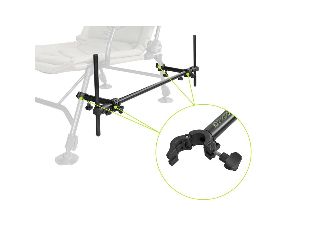 Nechcete kupovat na každou rybolovnou techniku samostatnou výbavu? Delphin Reaxe UniFIX přemění vaše běžné kaprařské křeslo v ideální feedrovou sestavu! Důmyslně propracovaný a maximálně univerzální držák feederových prutů, který lze připevnit na většinu rybářských křesel dostupných na trhu. UniFIX DUO disponuje posuvným uchytávacím mechanismem na křeslo s identickými plastovými klipy po obou stranách. Klipy jsou jištěny pomocí šroubů a lze je pomocí plastové redukce přizpůsobit pro různé průměry nohou a zároveň jsou otočné, takže není problém je upevnit na šikmé, svislé nebo vodorovné části konstrukce křesla. Variabilitu držáku podtrhuje i možnost posouvat a otáčet úchyty po jeho kovové konstrukci, což výrazně usnadňuje upevnění ke křeslům. Na obou koncích produktu se nacházejí tyčky umístěné v plastových klipech, které lze posouvat ve vertikální rovině, případně otáčet. Na horním konci tyček se nachází univerzální závit určený pro různé druhy feederových držáků na pruty. Držák je na obou koncích teleskopický, takže jej lze vysunout podle vašich potřeb do každé strany. UniFIX DUO je vyroben převážně z hliníku, takže je extra lehký a barevně je laděn do černa s výraznými zelenými prvky, typickými pro celou sérii REAXE. Technické parametry: Celková délka: 90-155cm Výška tyček se závitem: 0-28cm Průměr úchytu: 20-26mm Hmotnost: 762gDoplňkové parametry