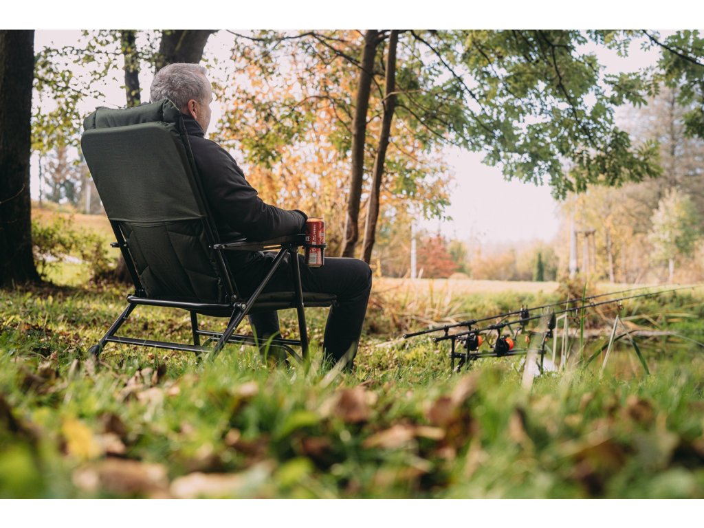 Rychlé sestavení a snadné polohování opěradla, pomocí područek, tak dělá křesílko ideálního parťáka na rybářské výpravy. Specifikace: - Jedinečný design matrace s polar fleecem - Použitá tkanina tmavě zelený polyester 500D/ polar fleece - Loketní podpěry s polohovatelným nastavením opěradla - Držák na nápoj v rukojeti - Ocelová konstrukce o průměru 25 a 12 mm - Čtyři výškově nastavitelné nohy - Velké pacičky proti zaboření do bláta - Rozměry: 43 x 55 x 42/103 cm - Váha: 6,4 kg Odkaz na video: http://www.youtube.com/watch?v=L9EpvMNhiY0Doplňkové parametry
