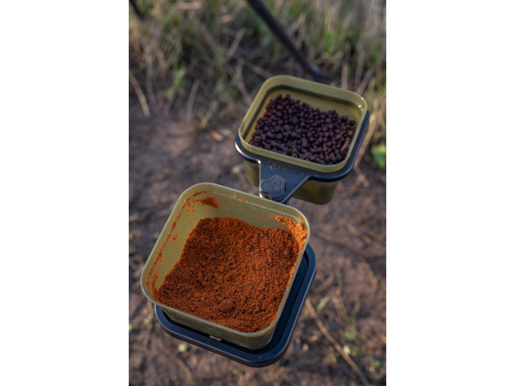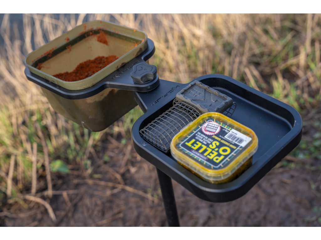 Na rozdíl od jiných podobných výrobků, které jsou velké a těžkopádné, tento nabízí užitečný držák na krabičky navržený tak, aby se do něj vešla 2 nebo 3 pintová(1,2l nebo 1,8l) krabička na nástrahy Korum Bait Tubs.