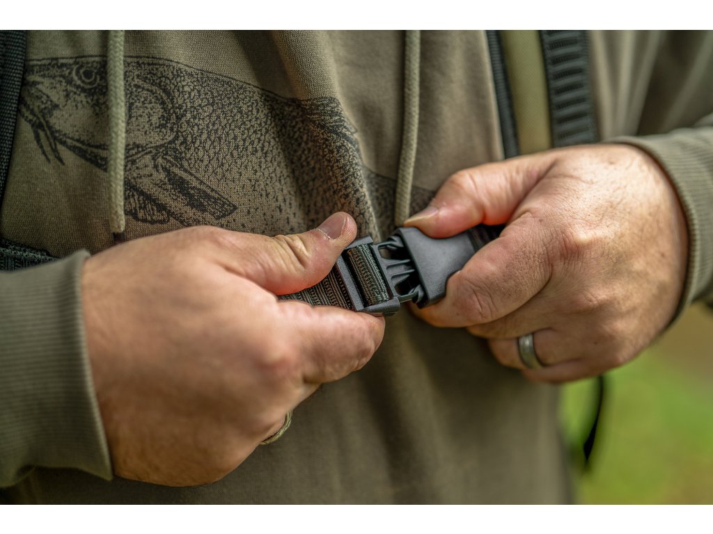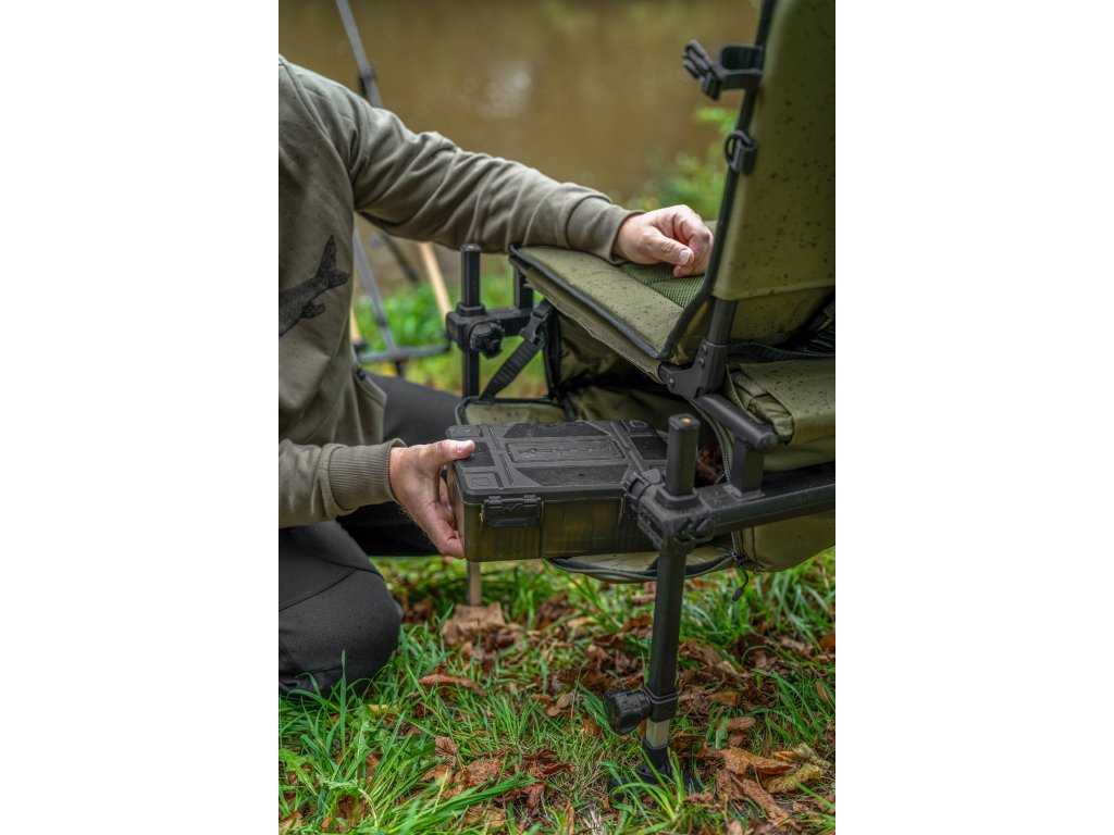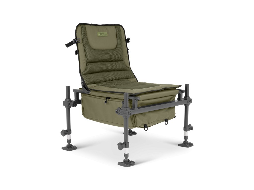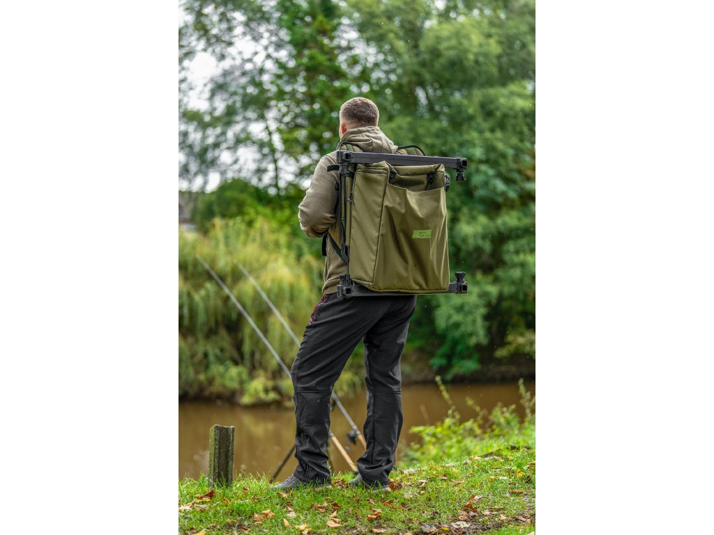 Revoluce v tom, jak rybáři nosí své rybářské vybavení. Díky kombinaci pohodlného a lehkého křesla s kompaktní plochým batohem lze křeslo Ruckchair přenášet stejně jako batoh. Přístup k rybářskému vybavení přímo pod sedadlem, stejně jako to dělají rybáři na bednách, bez problémů s velkou hmotností a přepravou. Taška je vybavena vstupními místy na obou stranách a zadní štěrbinovou kapsou na vidličky a nohy vašeho křesla S23. Při přepravě se uzavírá pomocí klipů. Popruhy batohu jsou vybaveny vertikálně nastavitelným hrudním popruhem. Obsahuje přídavná D poutka pro přenášení podložek a podběrákových hlav. Je vybaven také rukojetí pro přenášení. Dodává se se čtyřmi teleskopickými nohami křesla S23.
