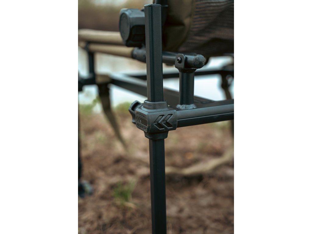 Model Progress je stále vybaven naší patentovanou konstrukcí vertikálních nohou s pevným rámem pro extra stabilitu a snadné nastavení nohou. V kombinaci s příslušenstvím Korum Any Chair získáte dokonalé feederové křeslo. Matrace je podepřena naším materiálem Supa Lite STRETCH, který zajišťuje lepší prodyšnost a pohodlí. Samotné sedadlo má odnímatelnou polstrovanou část pro snadnou údržbu. Nohy jsou při přepravě drženy elastickými poutky. Doplněno nastavitelným polstrovaným popruhem pro snadný transport. Standardně vybavené odpruženými teleskopický nohami S23.