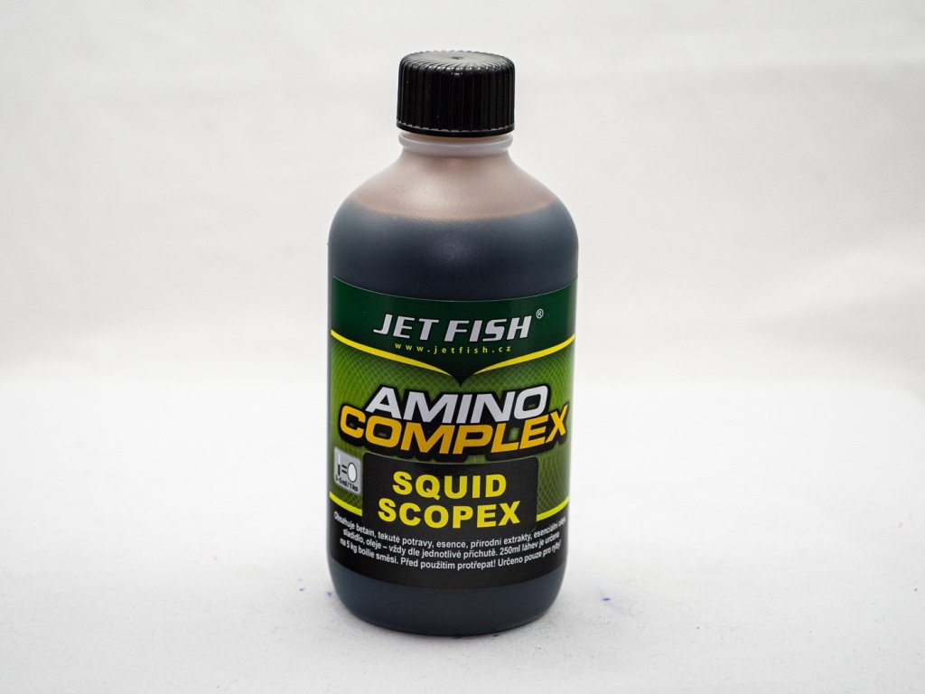 Při sestavování těchto complexů před lety, jsem chtěl kaprařům ušetřit všechny ty nákupy velkého množství lahviček s různými ingrediencemi. Aby vaše nástraha byla opravdu dobrá, musíte do ni přidat betain, CSL cornmino, bioamino, PPC amino, liquid liver, tekutý rybí protein, GLM extrakt, játrový extrakt, esenci, rybí olej, olej z tygřího ořechu, esenciální olej, sladidlo atd. To všechno navíc musí být dávkováno v ideálních poměrech, aby nástraha byla co nejúčinnější. Mojí snahou bylo ulehčit kaprařům tuto práci, ale zároveň i ušetřit peníze, protože zakoupené přísady nikdy nespotřebujete celé a doma pak máte velké množství zpola plných lahviček. Namíchal jsem tedy tyto complexy podle těch nejúspěšnějších receptur. Vše je tak v ideálních poměrech připraveno pro váš maximální úspěch. Obsah 250 ml lahvičky je určen přesně na 5 kg kbelík boilie směsi, a tak oba tyto výrobky tvoří vynikající kombinaci. Dávkování complexů je 4 - 6 ml na jedno vejce. Pro krátkodobé výlety použijte 6 ml, pro dlouhodobou 4 ml. Pokud nechcete experimentovat, používejte střední dávkování 5 ml při každé příležitosti. Nyní je tedy vše velmi snadné. Pro váš úspěšný lov stačí pouze zakoupit kbelík směsi a k tomu jen jednu jedinou lahvičku - amino complexu. Rozklepnout vejce, přidat amino complex, vyválet kuličky, uvařit a pak už se jen věnovat lovu kaprů. Od uvedení na trh se amino complexy staly velmi oblíbené a kapraři okamžitě vycítili, jak jsou pro ně výhodné.Doplňkové parametry