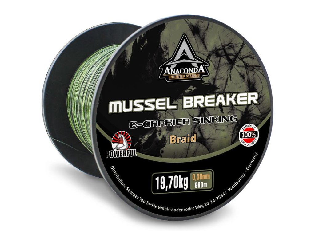 Nová X-8 Carrier Mussel Breaker je potápivá, pletená kaprová šňůra s obzvláště dobrou odolností proti otěru a vysokou pevností v uzlu. Je pevně spletená a zároveň super poddajná. Je tak pevná a odolná proti otěru, že ztráty ryb v důsledku přetržení budou už jen minulostí. Je vhodná jako návazec na spodový prut, ale také pro lov na dlouhé vzdálenosti.