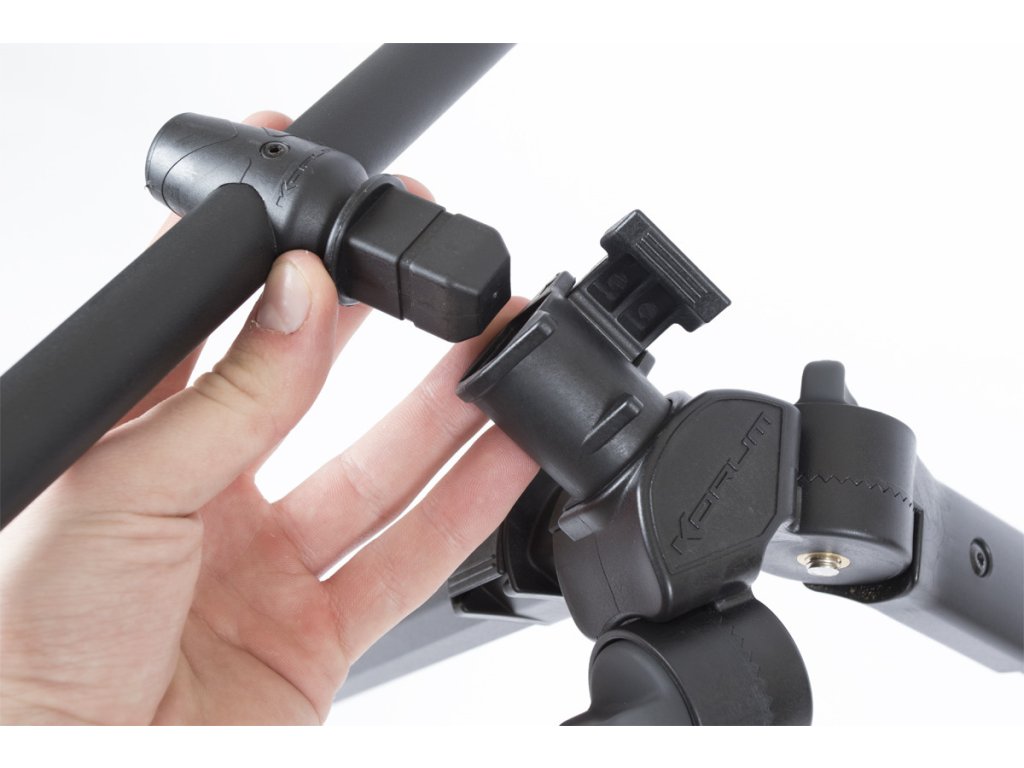 Firma Korum přichází s extrémně stabilním říčním tripodem! Tento produkt byl vyvinut pro maximální stabilitu a variabilitu v terénu. Nově na tripodu přibyl na zadním konci stabilizátor, který je možný zapíchnout do země, tam kde je to možné. Délka rámu se dá nastavovat stejně tak i délka předních noh. Nohy je také možné nastavovat do libovolného úhlu. K tripodu jsou dodávány 2 masivní hrazdičky, které se do tripodu připínají rychlovýměnným systémem SNAPLOK. Ale největší z jeho předností je velmi rychlé složení i rozložení a váha 1,6 kg včetně hrazdiček.