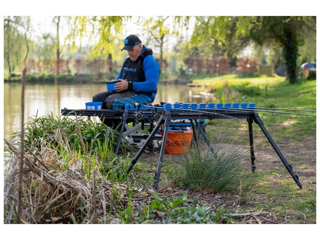 Je ideální pro použití v jakémkoli terénu. Díky čtyřem teleskopickým nohám, posuvné pěnové vložce a ploché konstrukci se jedná o nepostradatelnou součást výbavy každého závodního rybáře.