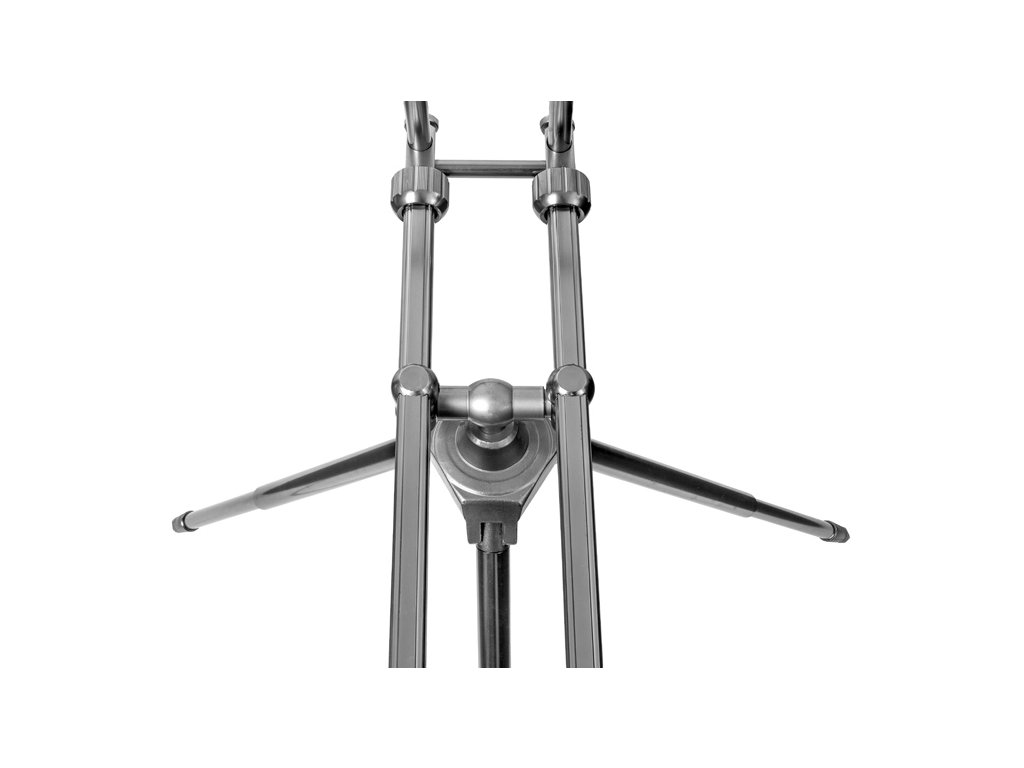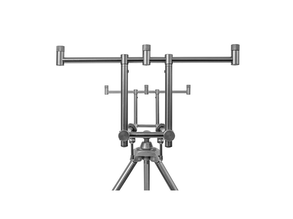 Tripod Delphin TPX můžeme klidně označit za příbuzného dnes už legendárního rodpodu RPX. Podobně jako v případě RPX nebyly ani při TPX použity žádné plastové části, což ho předurčuje k vysoké životnosti a spolehlivosti i v těch nejnáročnějších podmínkách. Další jejich společnou vlastností je rozteč hrazd, které tak bez problémů pasují na oba modely. Navíc tyto hrazdy disponují utahovací maticí, díky čemuž vždy vhodně upevníte jakýkoliv signalizátor. Silver verze je charakteristická svou takzvanou "gun smoke" (kouřová šedá) povrchovou úpravou, která vznikla anodizací hliníkové konstrukce. Středová část je stříkaná do mírně odlišného odstínu, díky čemuž nabývá TPX zajímavý, propracovaný design. Nespornou výhodou, ve srovnání s konkurenčními tripody, jsou jeho výsuvná nastavitelná ramena s hranatým profilem. Právě hranatý profil zcela eliminuje možnost protočení, čímž je zajištěna mnohem lepší stabilita oproti kruhovým ramenům. Dotahování hlavního kloubu je řešeno takzvaným "svěrákovým mechanismem", při kterém po nastavení tripodu do optimálního úhlu jednoduše dotáhnete šroub podobně jako na svěráku. Devizou je také háček na spodní straně, na který je možné v případě nepříznivých povětrnostních podmínek upevnit závaží, čímž posunete stabilitu tripodu na ještě vyšší level. Díky teleskopickým nohám a nastavitelnému úhlu výsuvných ramen dokážete přední část tripodu TPX dostat až do úrovně 125cm nad zemí. To umožňuje vést vaše vlasce z velké výšky, díky čemuž je TPX vhodný společník i při lovu na řekách a velkých vodních nádržích. Samozřejmostí u tripodu Delphin TPX je praktické transportní pouzdro. Technické parametry: Počet prutů: max.3 Výška nohou: 40-65cm Nastavení délky vrchní části: 70-115cm Šířka přední hrazdy: 40cm Šířka zadní hrazdy: 40cm Hmotnost: 2800g Transportní rozměry: 80x25x13cmDoplňkové parametry