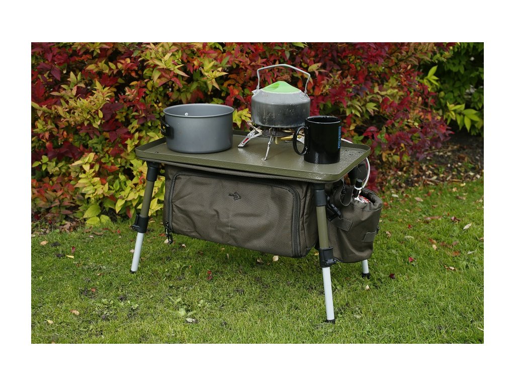 Vrchní část stolku je z hrubého materiálu a tak Vám nebude při vaření po stolku nic klouzat. Bivvy stolek je dále vybaven odnímatelným pouzdrem na plynovou kartuš, což zajišťuje více místa na samotném stolku.