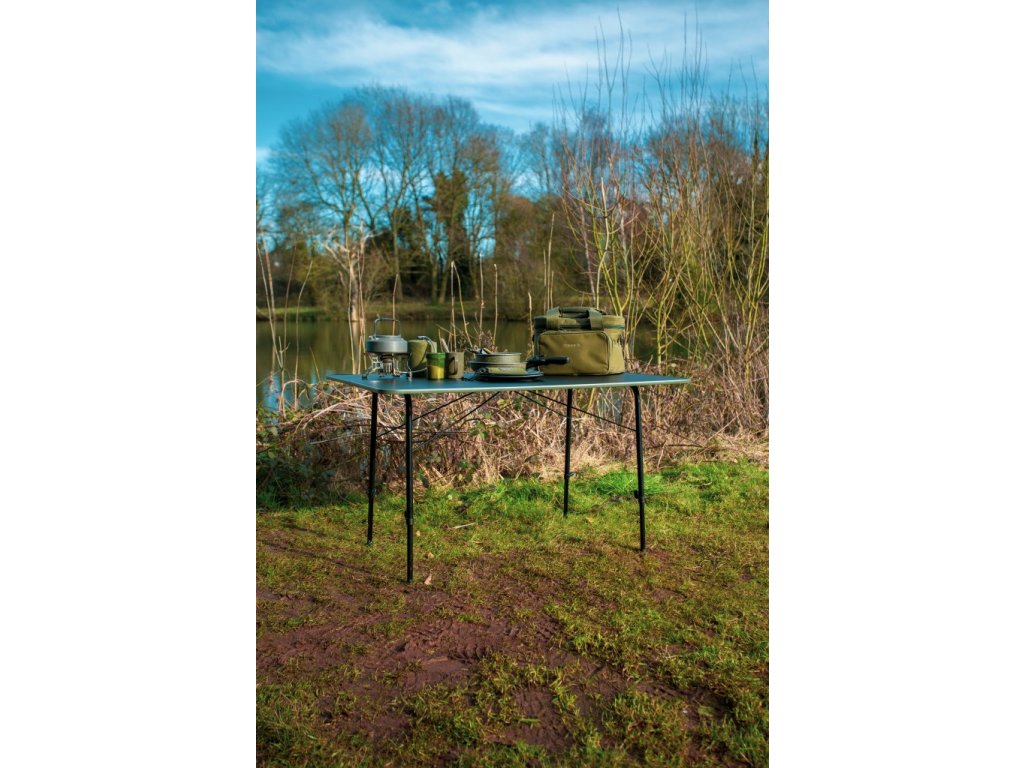 Trakker Stolek Folding Session Table Large byl navržen především pro rybáře, kteří jezdí na delší výpravy.